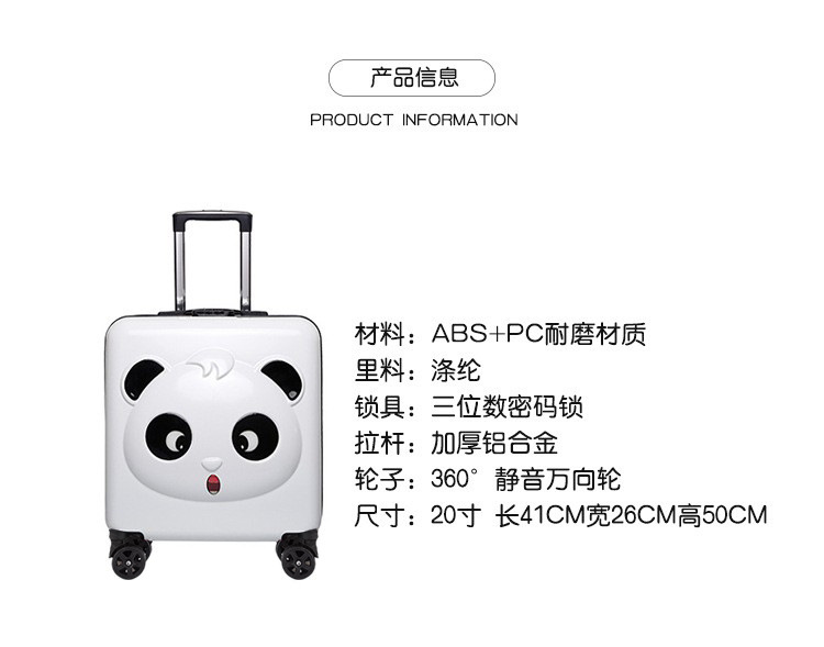 도매 20 인치 어린이 수하물 유니버설 휠 팬더 트롤리 케이스 만화 여행 가방 훈련 수업 오프닝 선물 상자스토어 가기