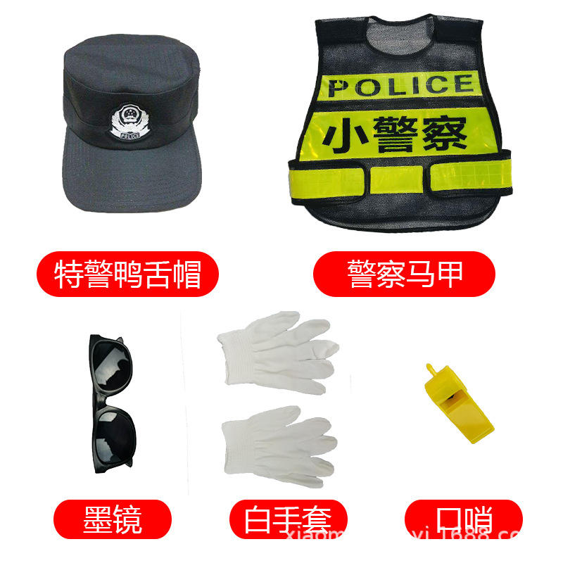 • 특수 경찰 모자 + 검정 조끼 + 선글라스 호루라기 흰 장갑