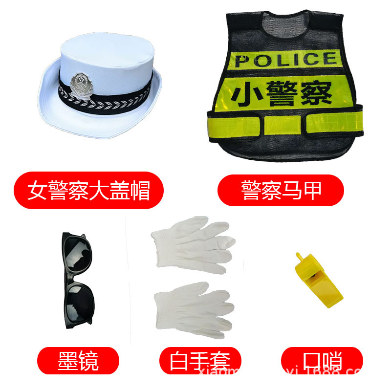 • 경찰 모자 + 검정 조끼 + 선글라스 호루라기 흰 장갑
