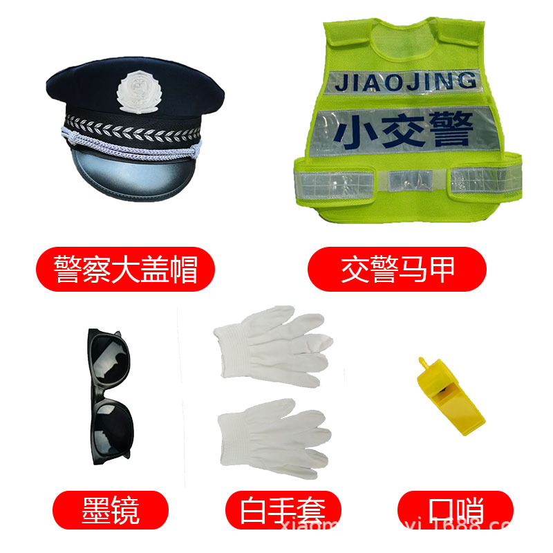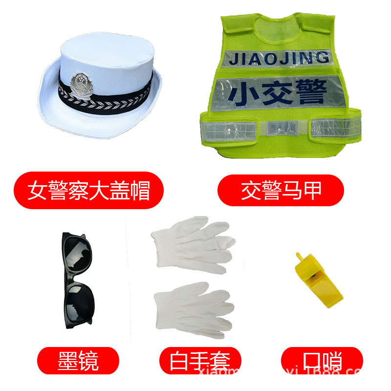 • 경찰 모자 + 노란 조끼 + 선글라스 호루라기 흰 장갑