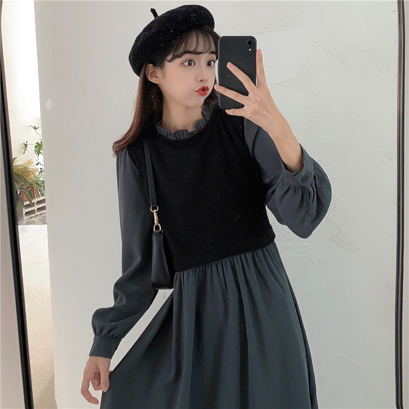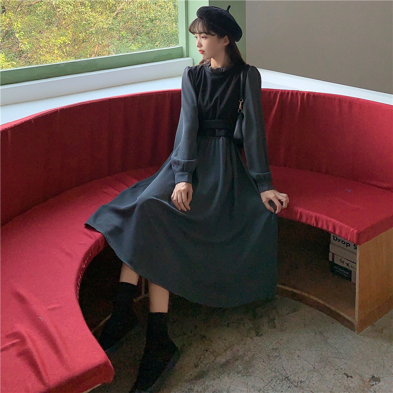 2024 가을 신상 프렌치 레트로 긴팔 원피스 여성 디자인 감각 독특한 허리라인 슬림핏 우아한 스커트