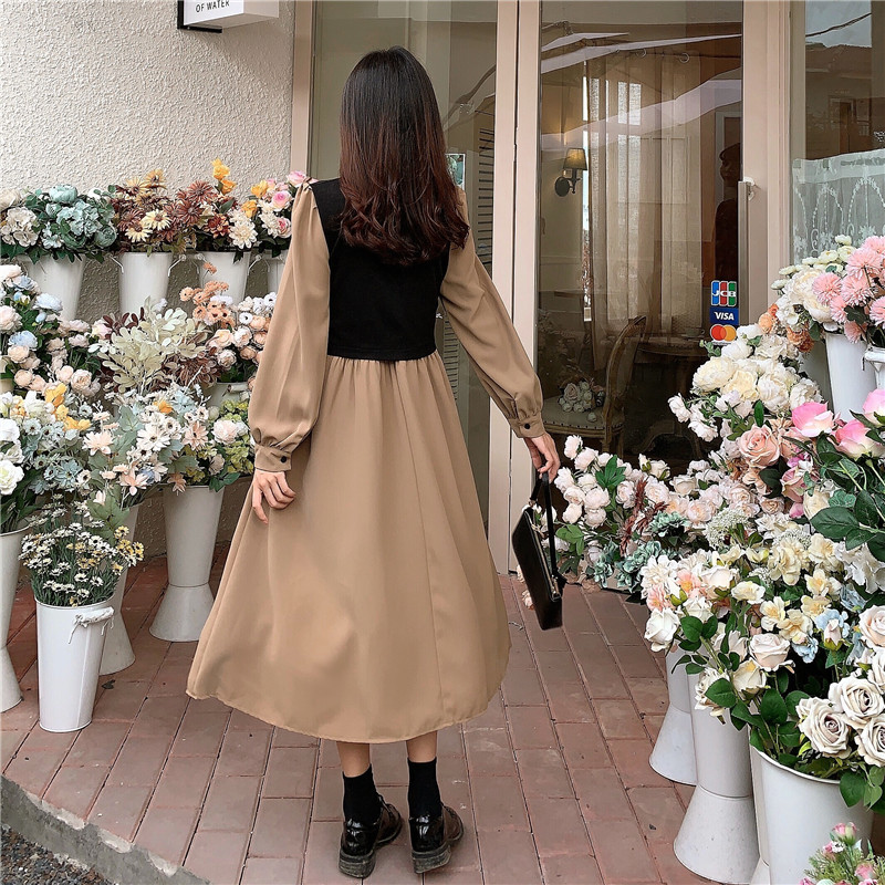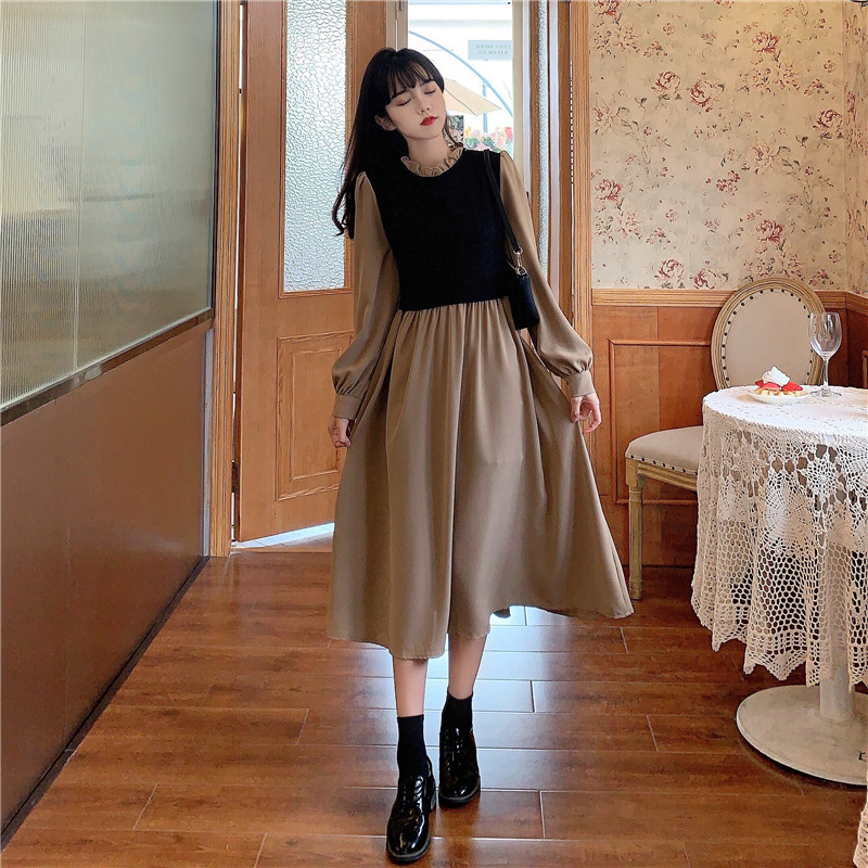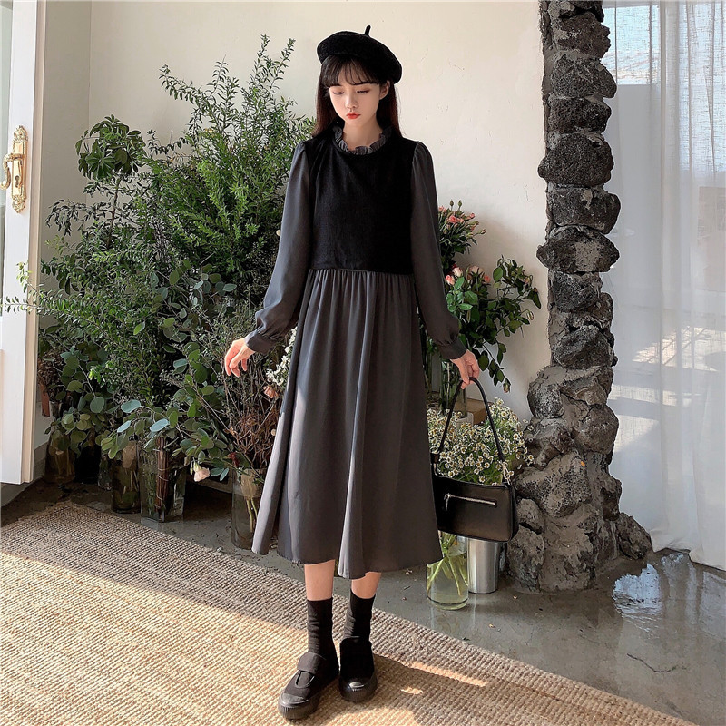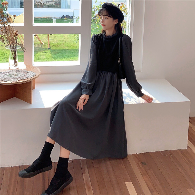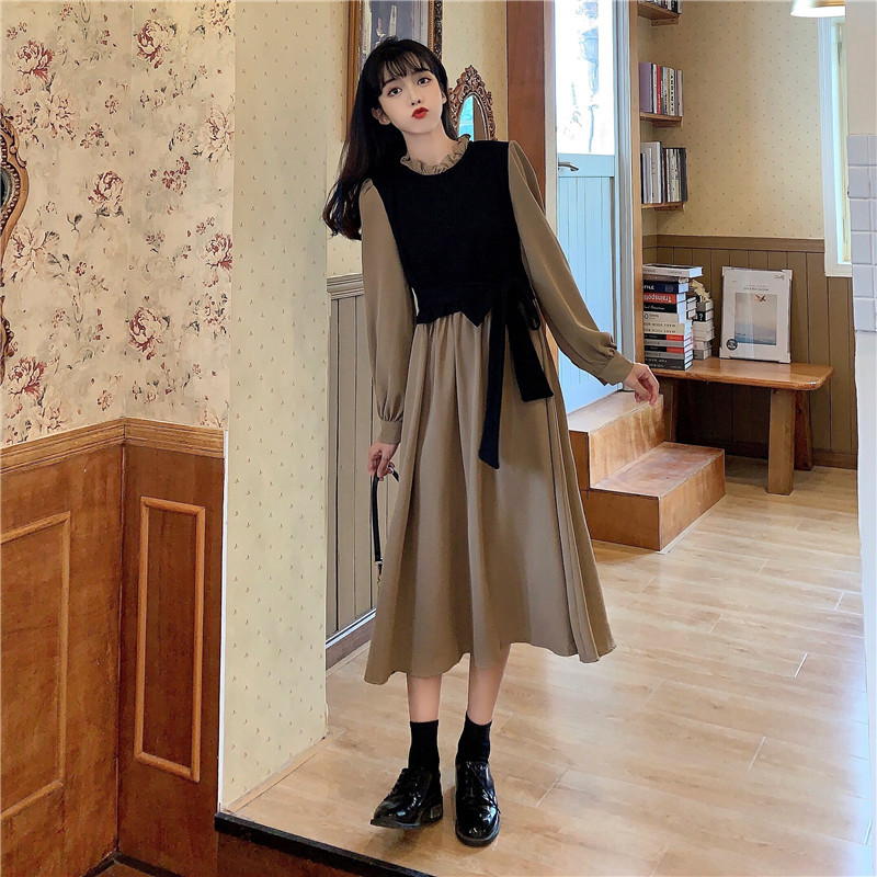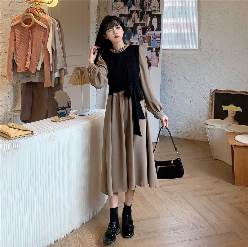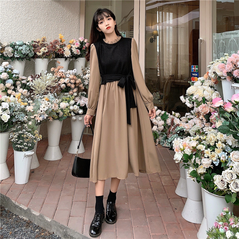2024 가을 신상 프렌치 레트로 긴팔 원피스 여성 디자인 감각 독특한 허리라인 슬림핏 우아한 스커트스토어 가기