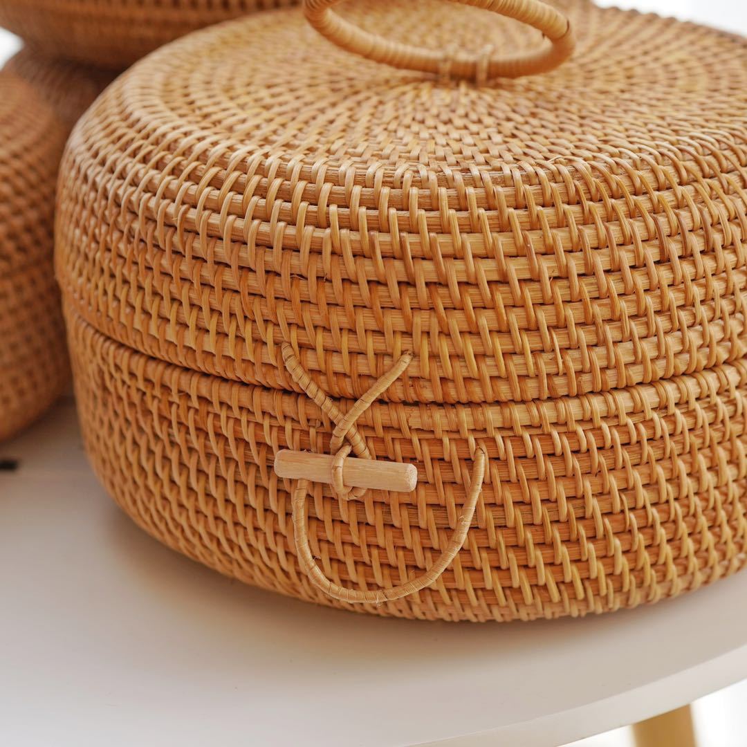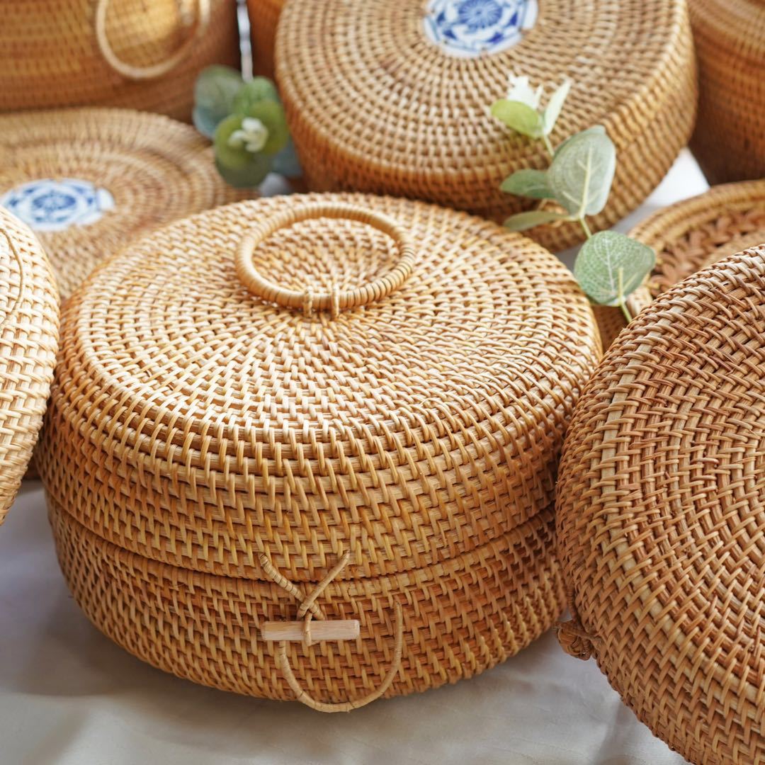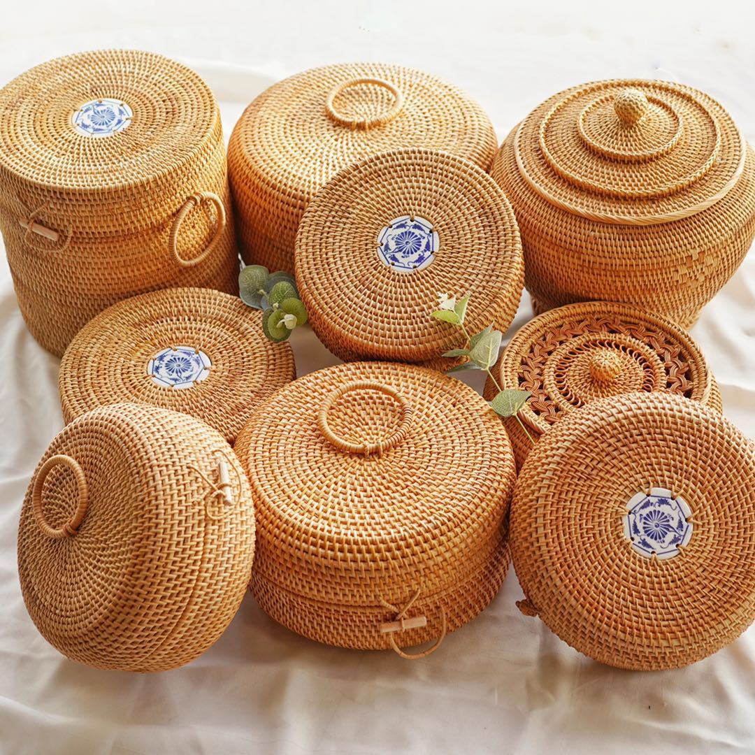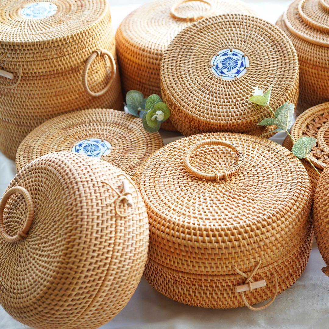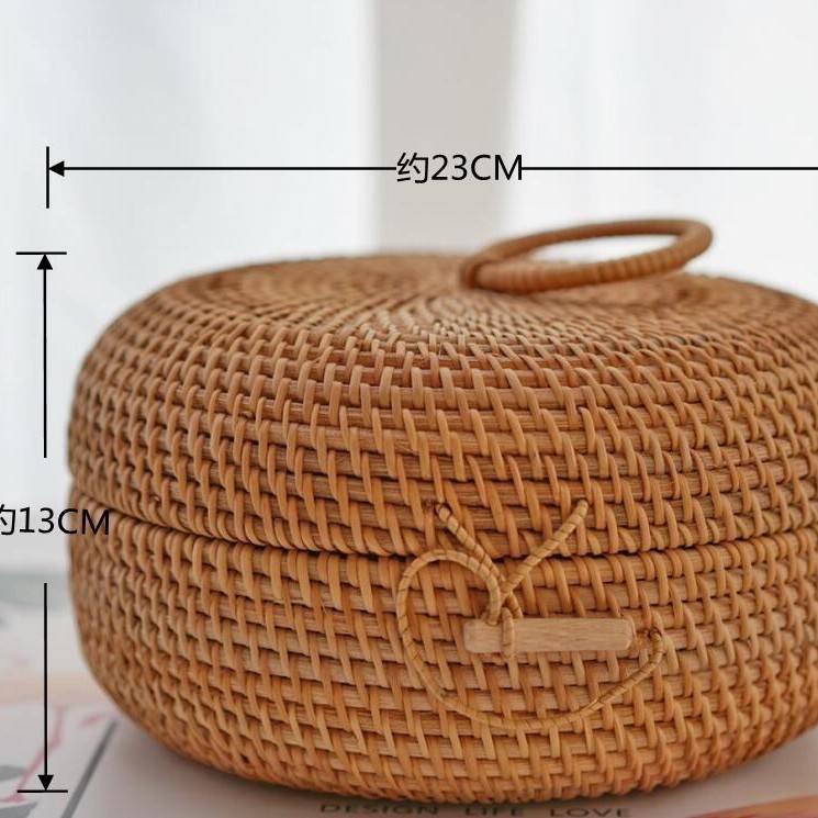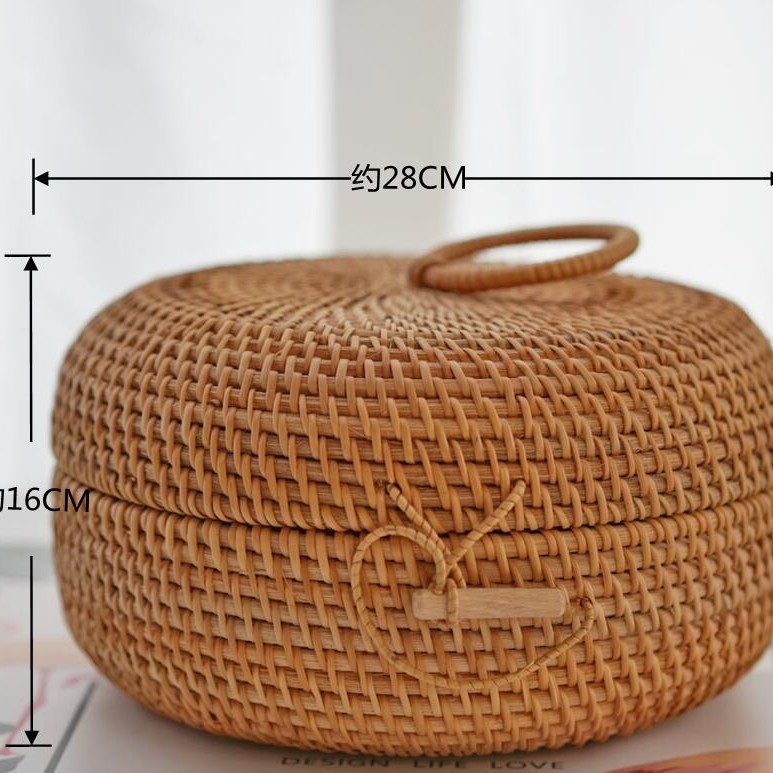베트남 수제 등나무 뚜껑이있는 사과 모양의 보관함 거실 데스크탑 간단한 커피 테이블 보관 상자 등나무 바구니