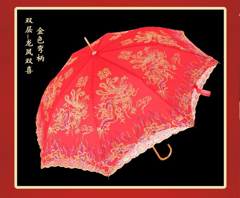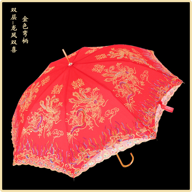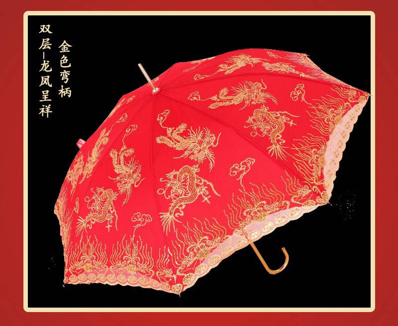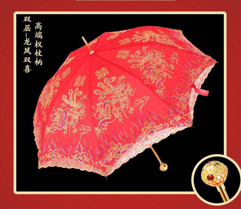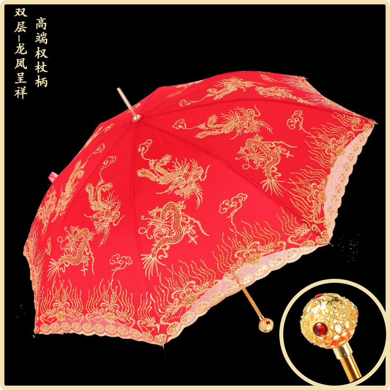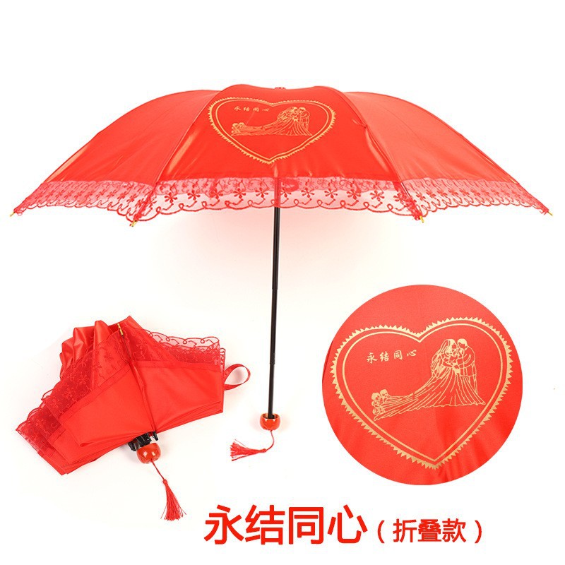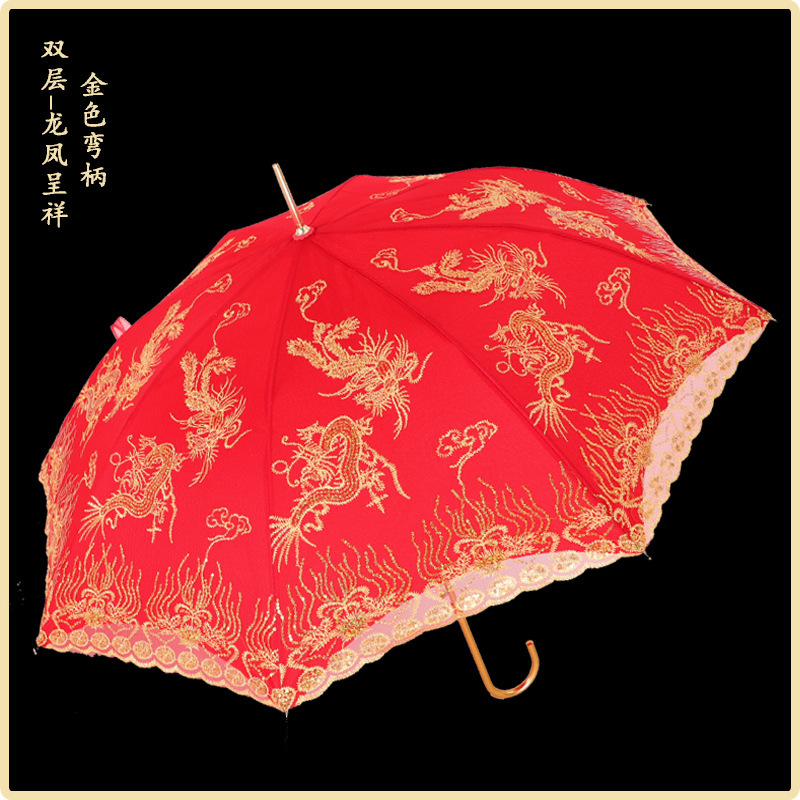새로운 레이스 레드 웨딩 우산, 결혼식용 접이식 자수 레트로 신중국풍 웨딩 롱 핸들 신부 우산