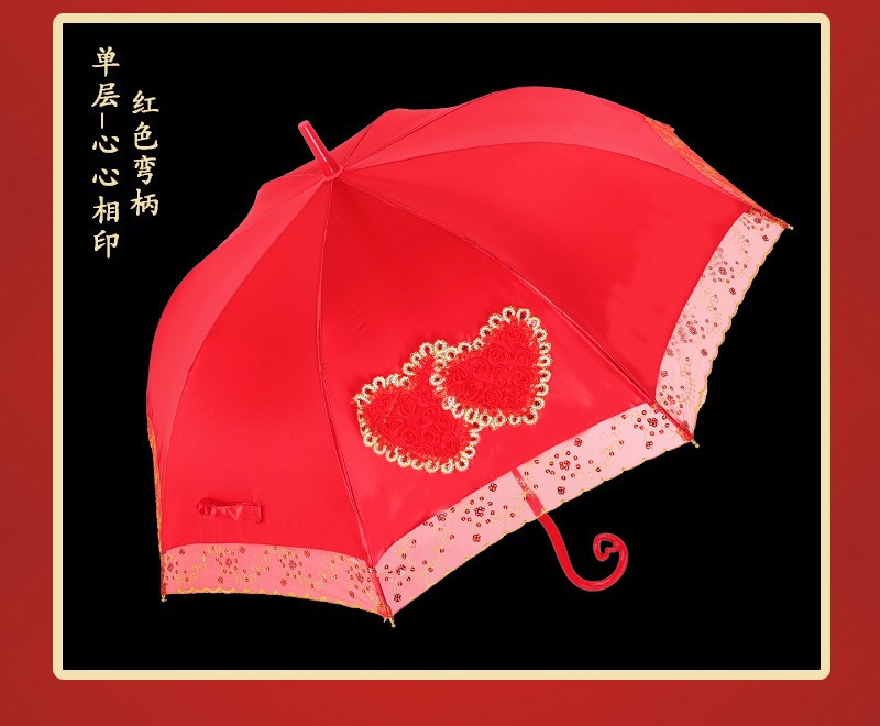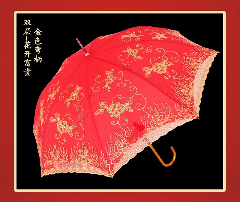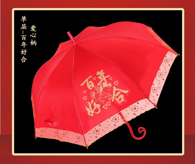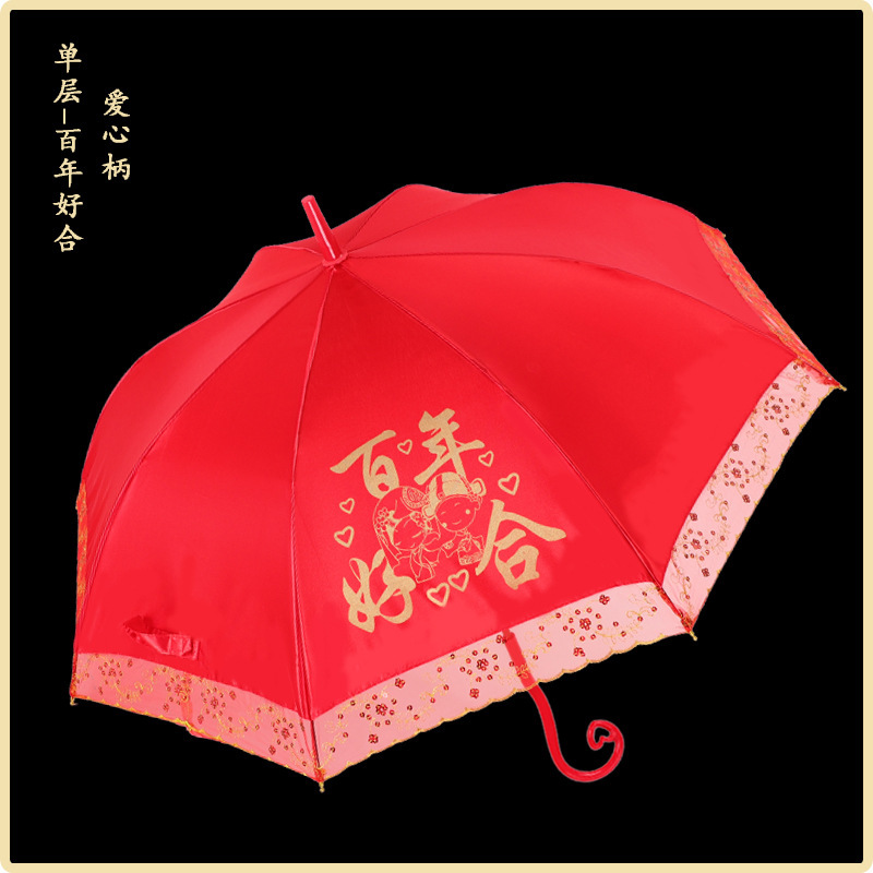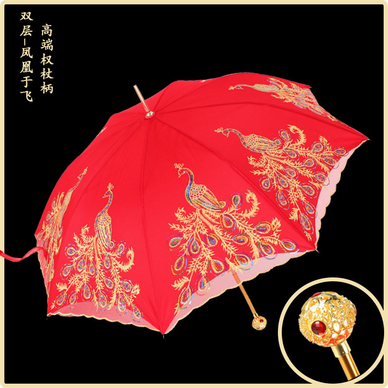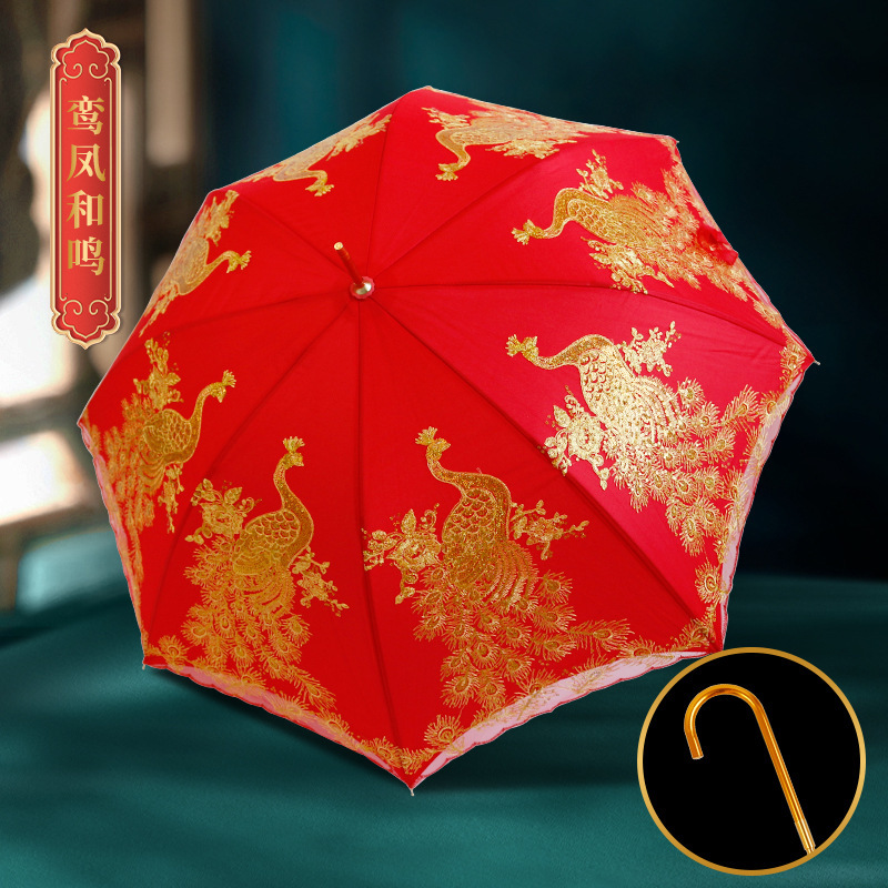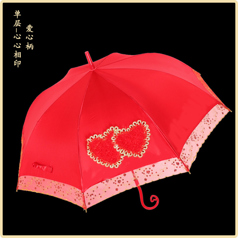 새로운 레이스 레드 웨딩 우산, 결혼식용 접이식 자수 레트로 신중국풍 웨딩 롱 핸들 신부 우산