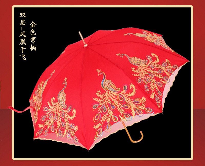 새로운 레이스 레드 웨딩 우산, 결혼식용 접이식 자수 레트로 신중국풍 웨딩 롱 핸들 신부 우산스토어 가기