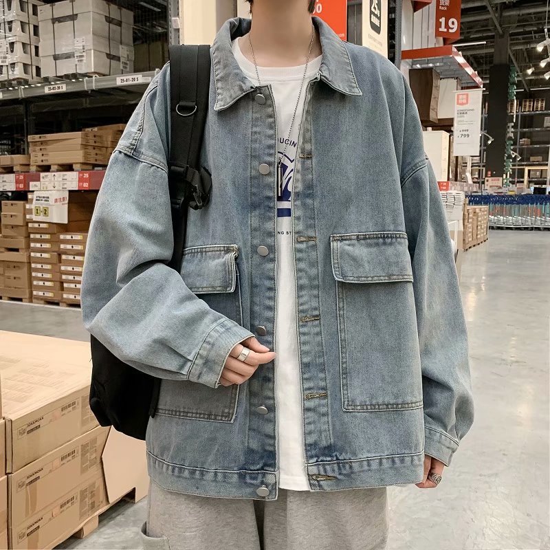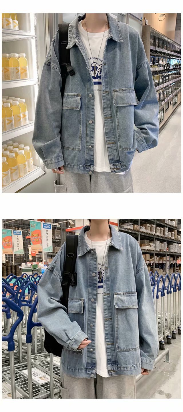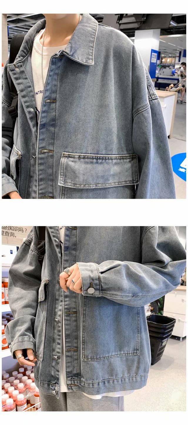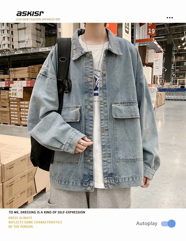 일본 스타일 유행 브랜드 작업 데님 재킷 남자의 봄과 가을 느슨한 유행 탑 한국 스타일 커플의 모든 일치 재킷스토어 가기