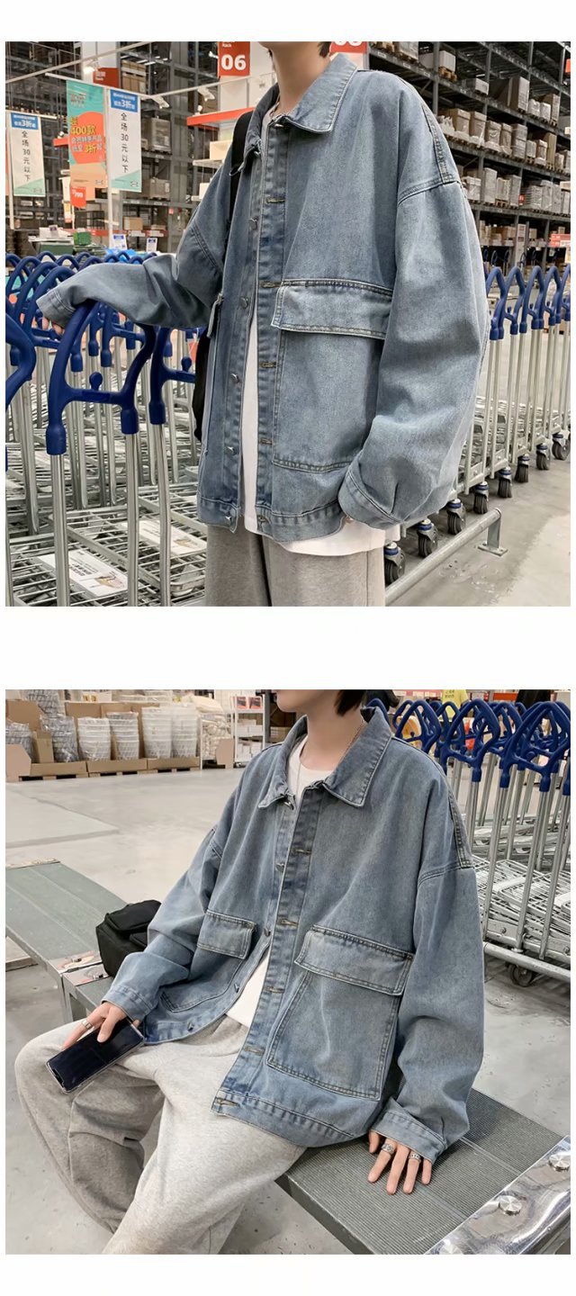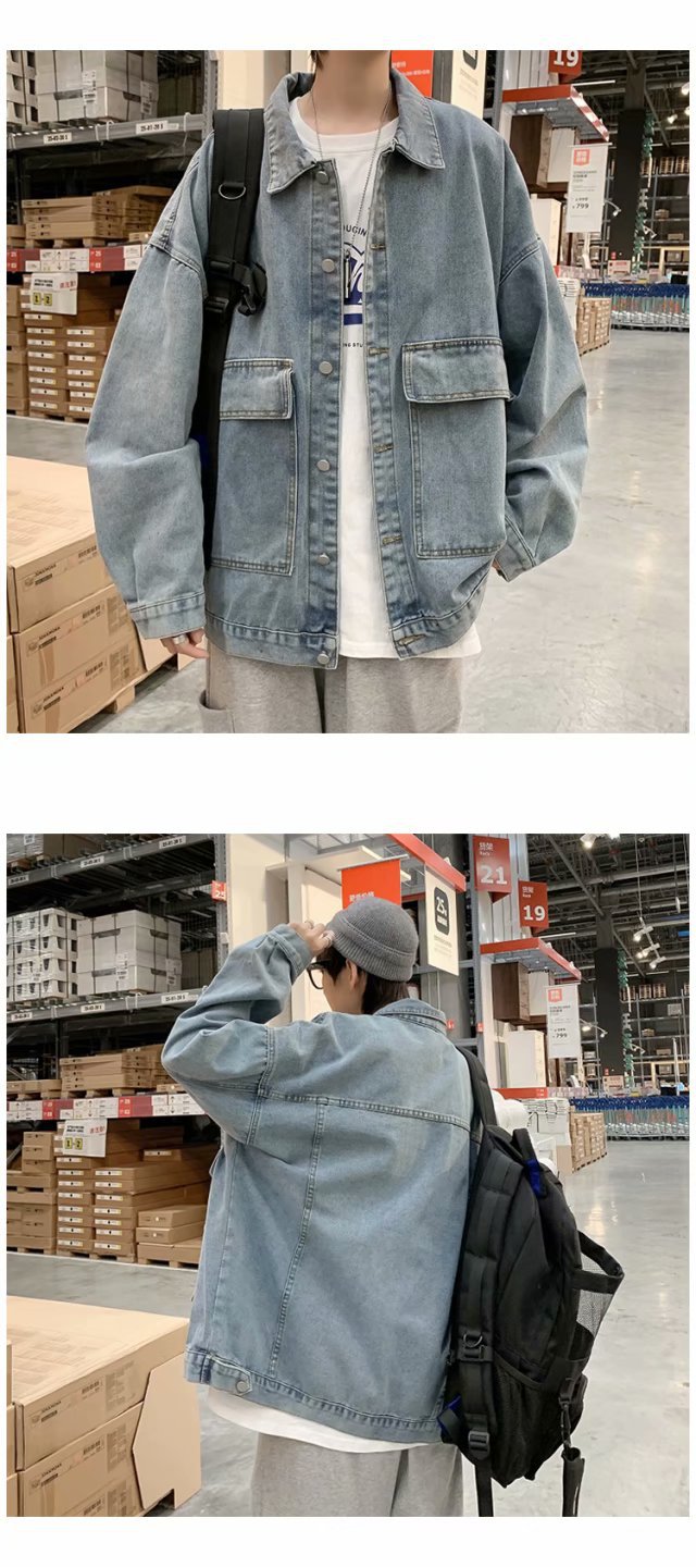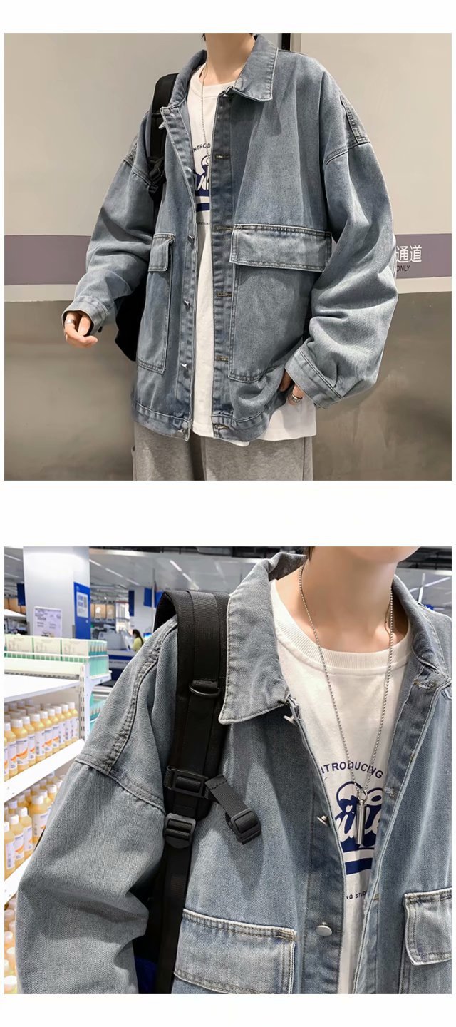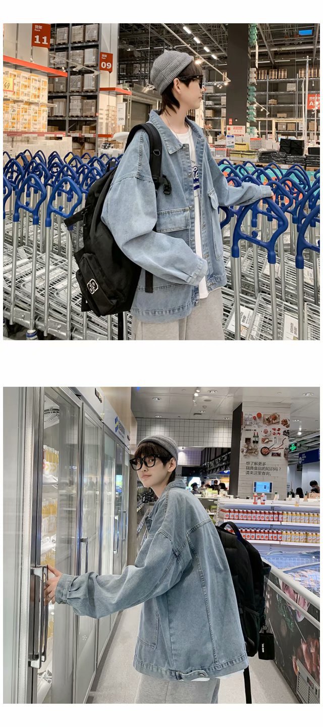 日系ins潮牌工装牛仔夹克男春秋季宽松潮流上衣韩版情侣百搭外套