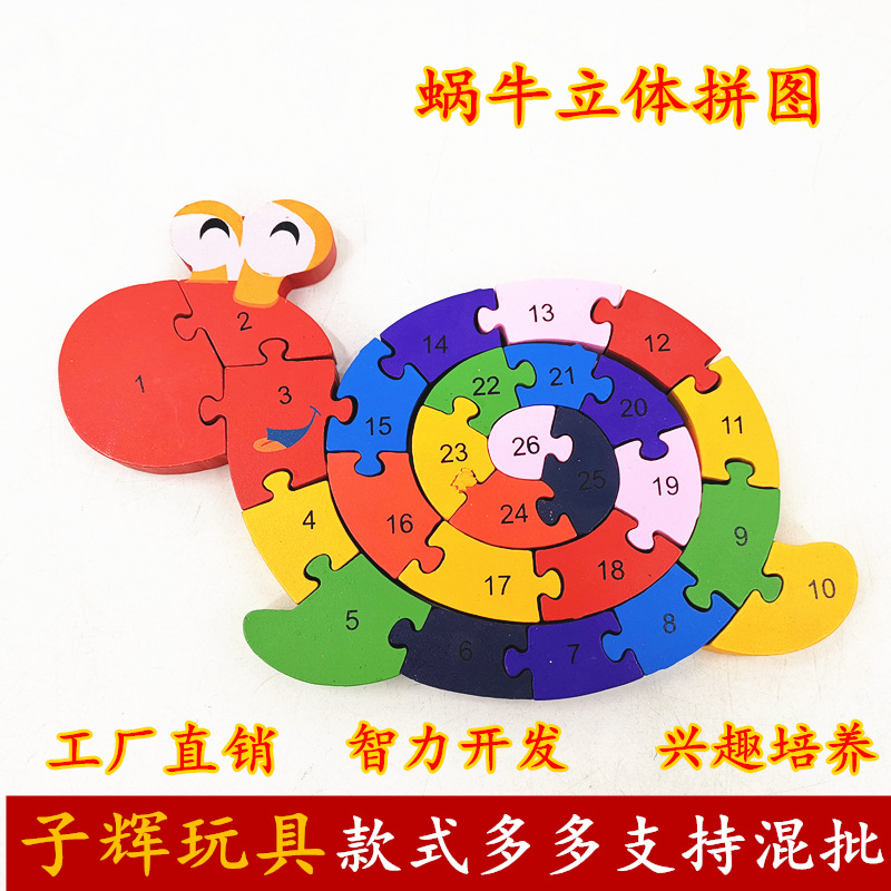 어린이 조기 교육인지 퍼즐 기린 달팽이 나무 퍼즐 만화 동물 입체 퍼즐 장난감 퍼즐스토어 가기