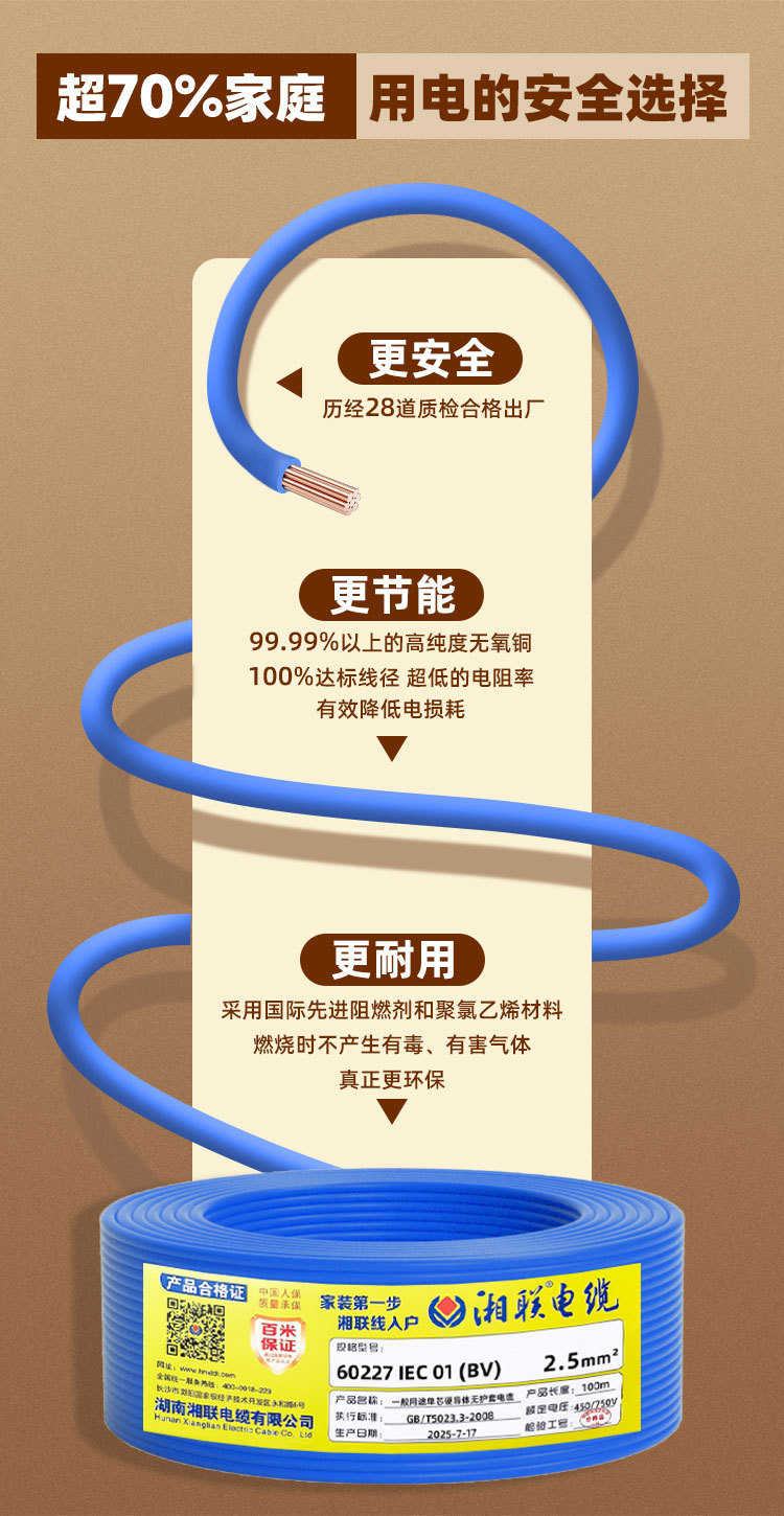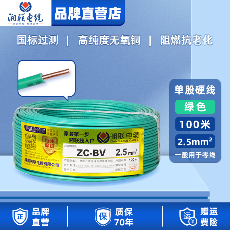 와이어 가정용 순수 구리 zc-bv 난연성 국가 표준 단일 코어 구리 와이어 1.5 2.5 4 6 10 평방 외장 와이어스토어 가기