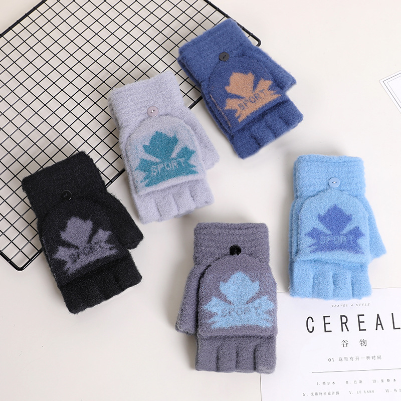 루이야 엄선 남성용 겨울 모조 캐시미어 보온 두꺼운 반장갑 반덮개 학생용 필기 운전용