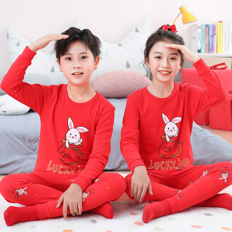 드래곤 12 세 어린이 순면 가을 옷과 바지의 해에 소년 소녀를위한 어린이 빨간 속옷 열 세트스토어 가기