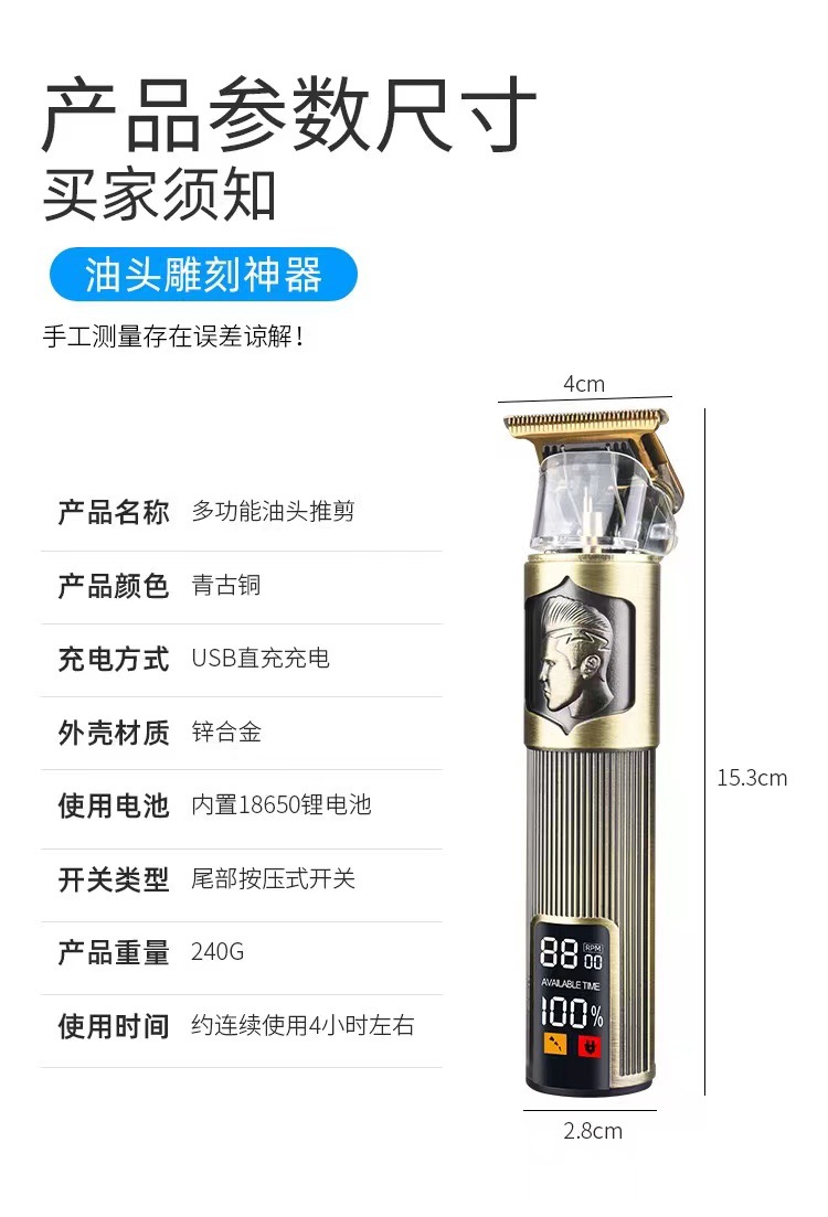 국경 간 부처의 머리 클리퍼 레트로 오일 헤드 전기 클리퍼 업그레이드 T9 오일 헤드 클리퍼 전기 클리퍼 조각 칼 모델링 클리퍼스토어 가기