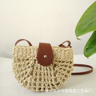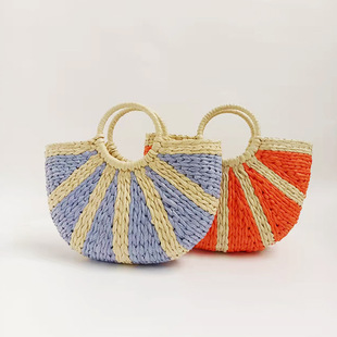 2024 새로운 한국식 수제 밀짚 가방 휴가 해변 짠 여성 가방 캐주얼 휴대용 7 색 두꺼운 로프 짠 가방