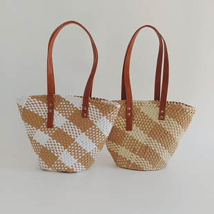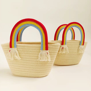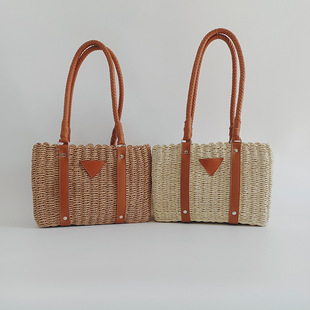 2024 새로운 한국식 수제 밀짚 가방 휴가 해변 짠 여성 가방 캐주얼 휴대용 7 색 두꺼운 로프 짠 가방스토어 가기