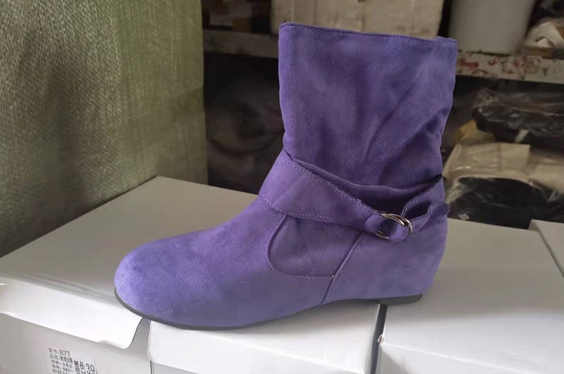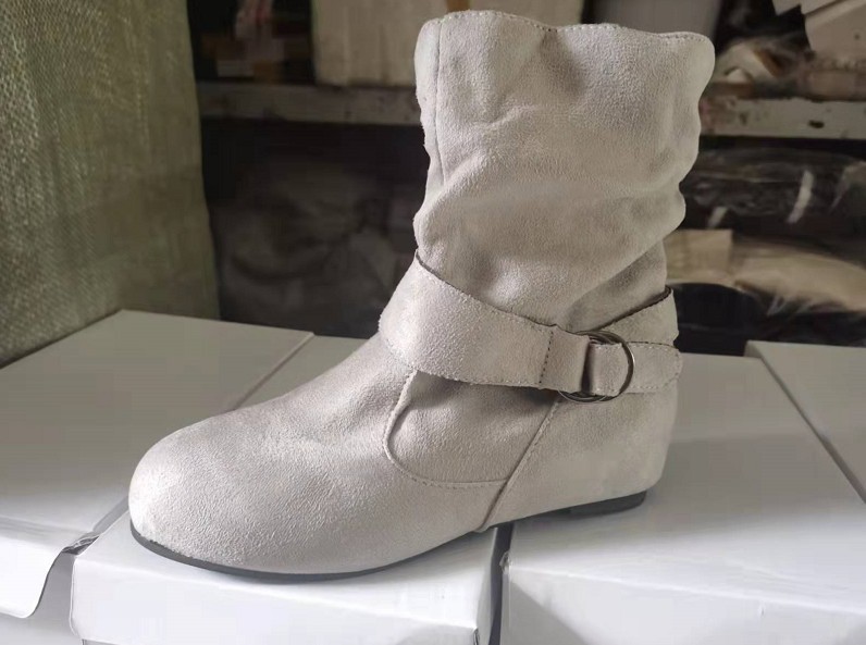 가을과 겨울 새로운 43 플러스 사이즈 플랫 바닥 벨트 버클 여성의 짧은 부츠 스웨이드 지퍼 라운드 발가락 여성 부츠스토어 가기