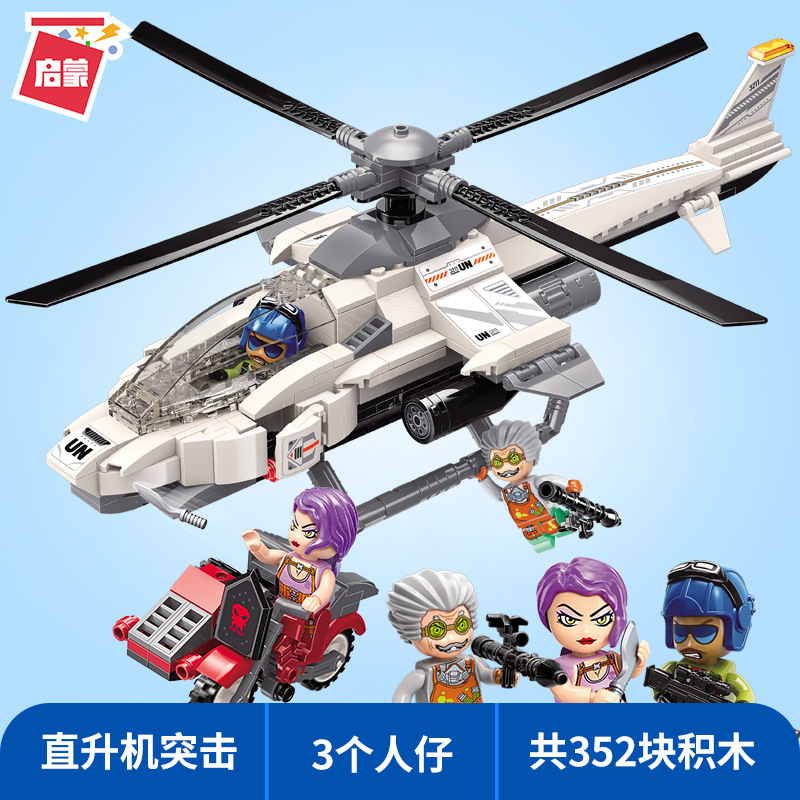 계몽 군사 천둥 임무 탱크 장갑 전투 차량 헬리콥터 어린이 조립 빌딩 블록 모델 남성용 교육 완구스토어 가기