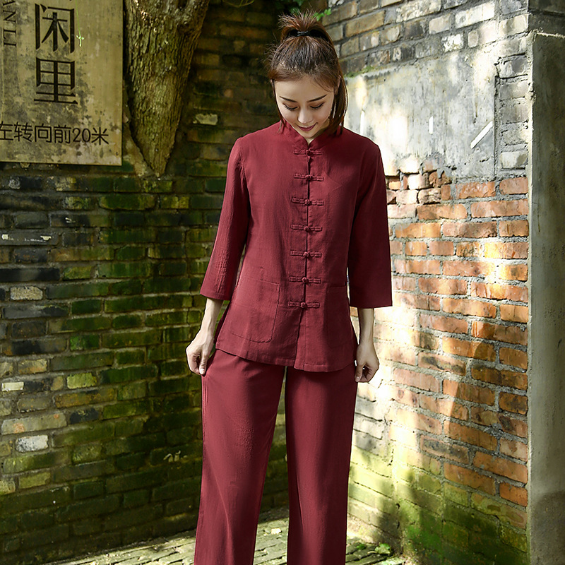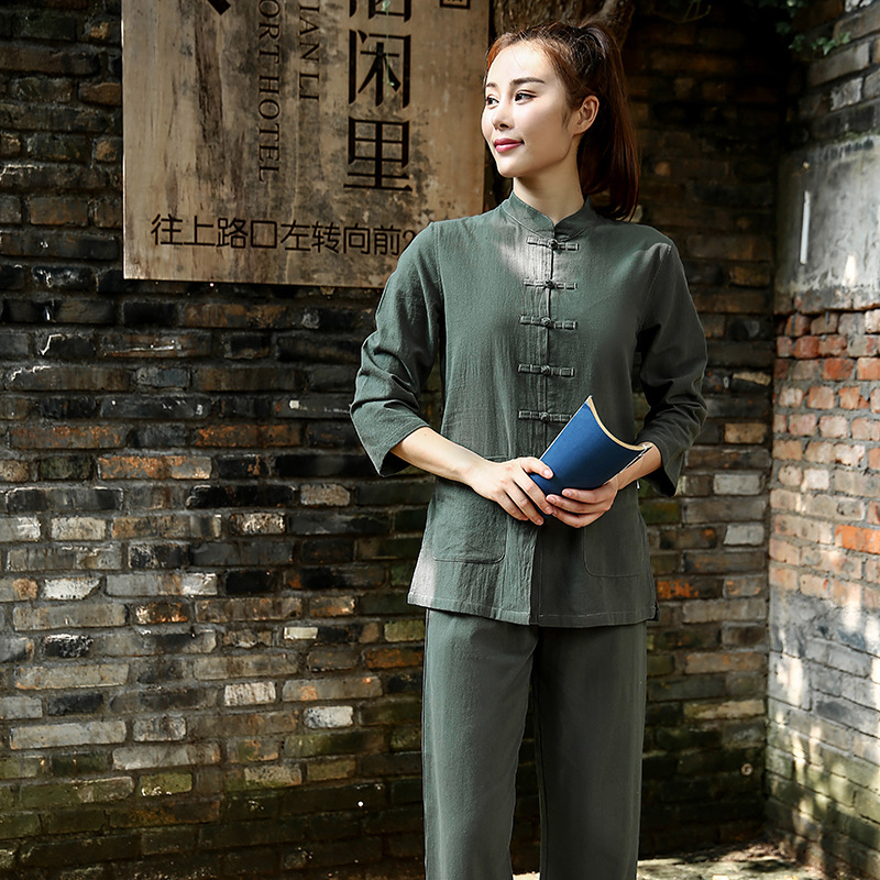 기모 두꺼운 새로운 스포츠 면과 린넨 요가 세트 주시 명상 타이지 세트 세트스토어 가기