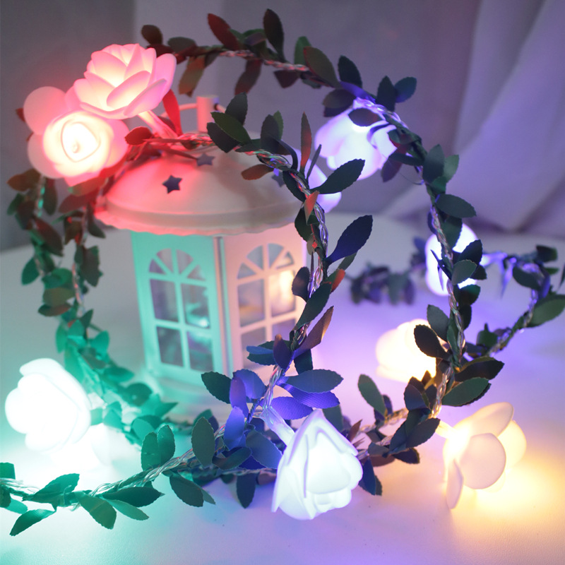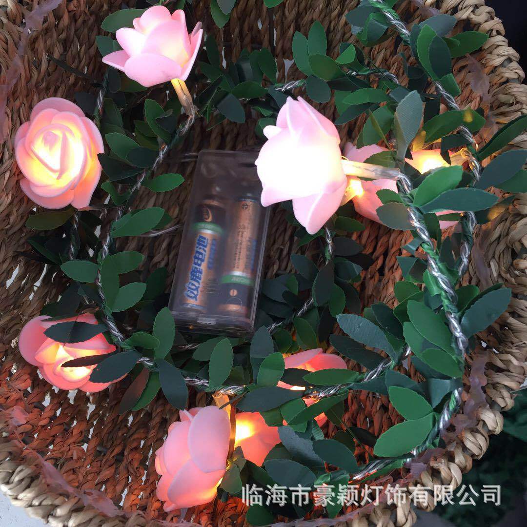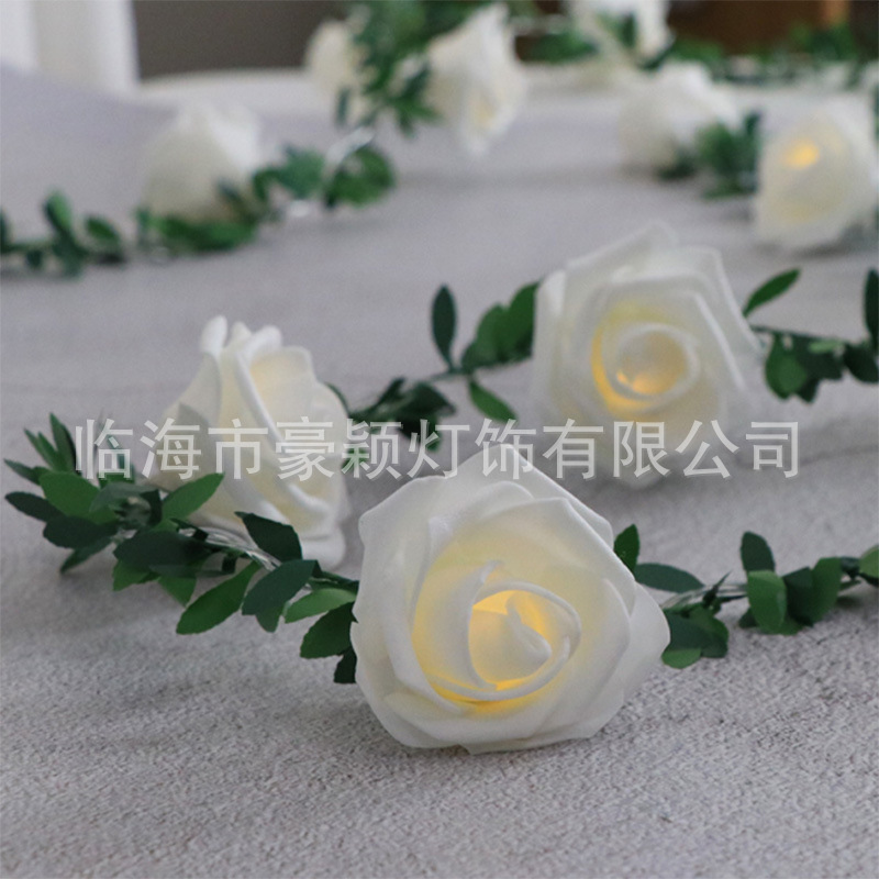 产品材质:LED灯串+塑料藤叶+EVA玫瑰花