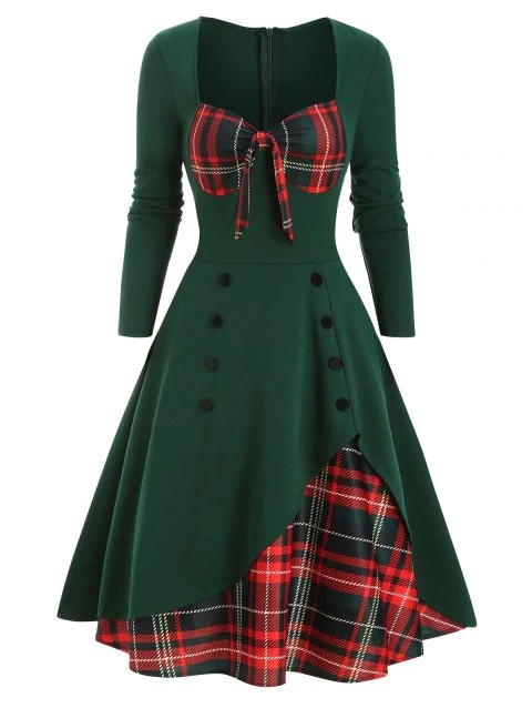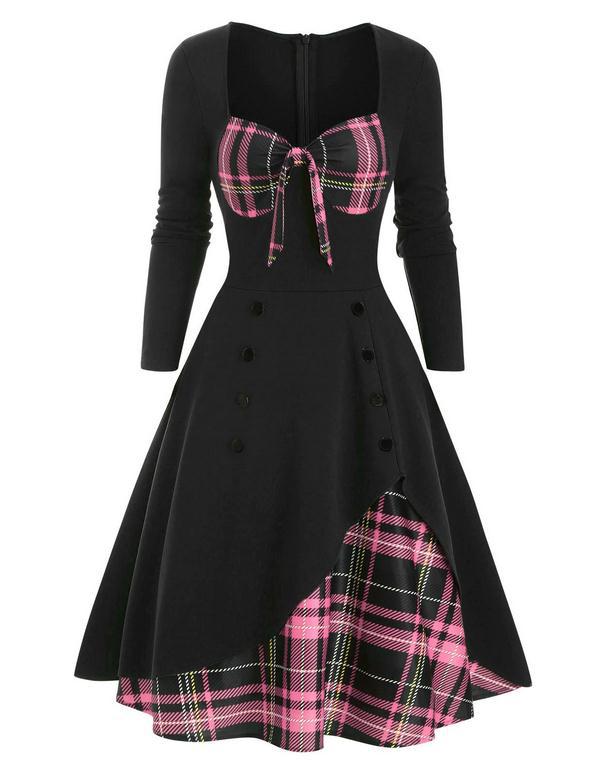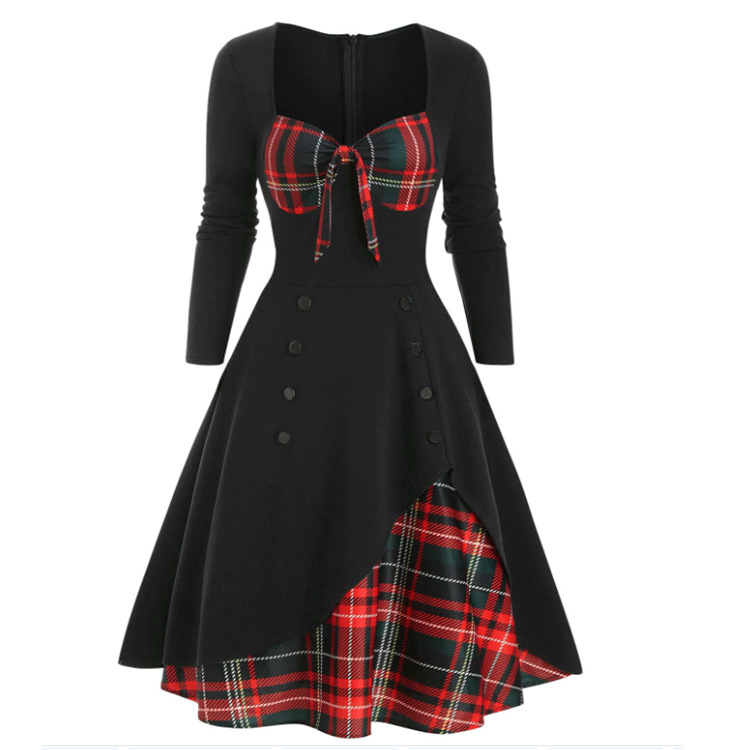 2025 봄 여름 신상 여성복 배색 스티치 더블 버튼 와이드 스커트 원피스스토어 가기