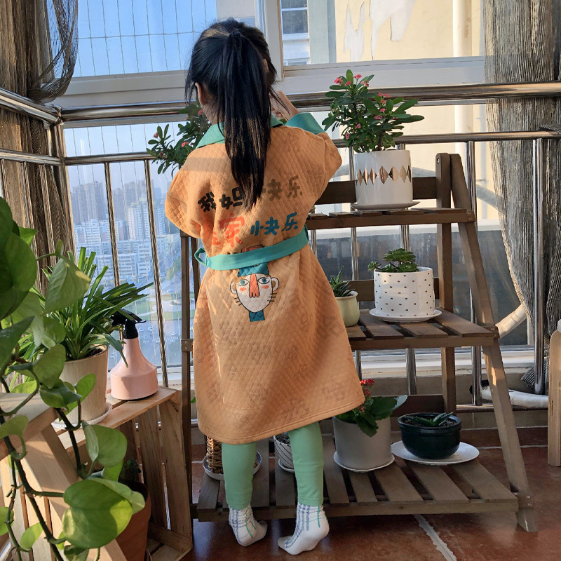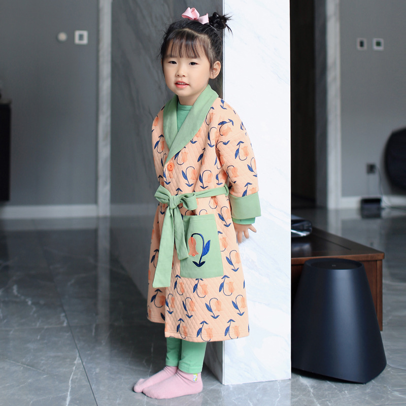 CUHK 어린이 가정복 3 따뜻한 면 잠옷 레이스 업 잠옷 남성과 여성의 가을과 겨울 잠옷 따뜻한 잠옷스토어 가기