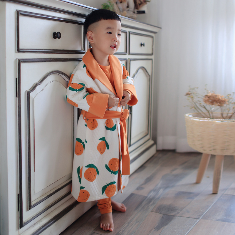 CUHK 어린이 가정복 3 따뜻한 면 잠옷 레이스 업 잠옷 남성과 여성의 가을과 겨울 잠옷 따뜻한 잠옷