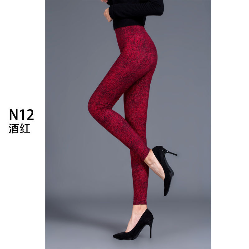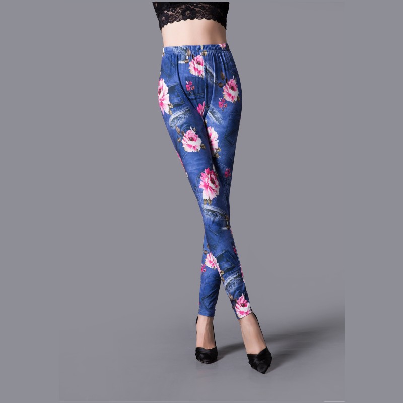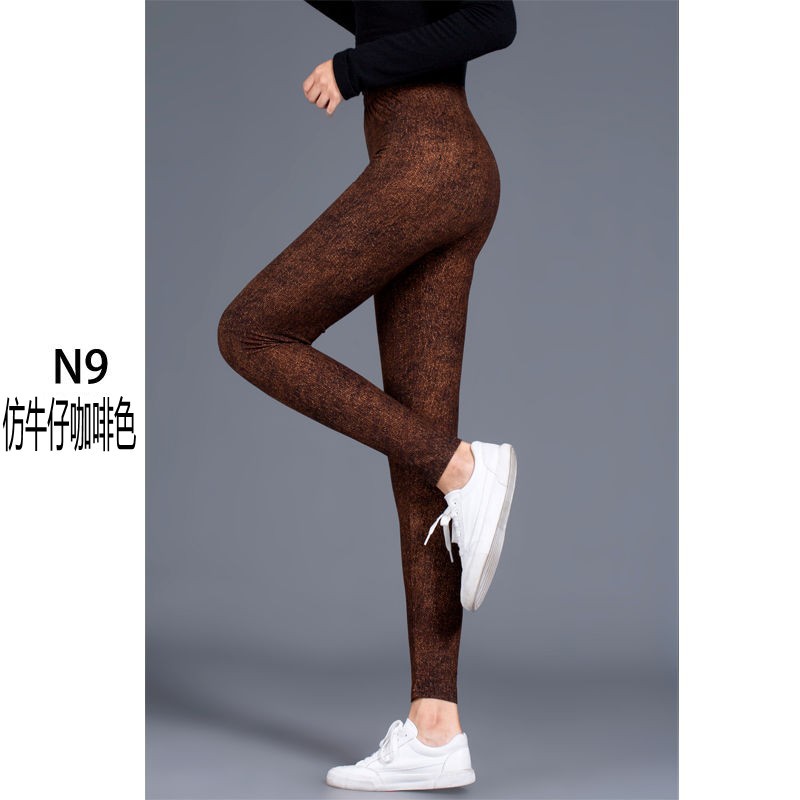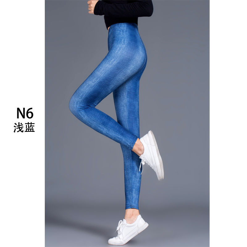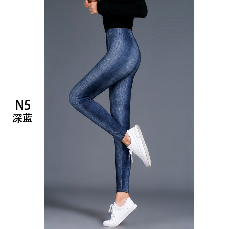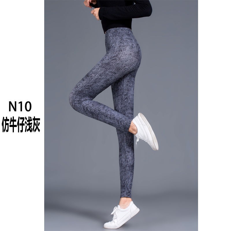 봄과 가을 모조 데님 프린트 레깅스 겉옷 틸트 팬츠 기모 스트레치 여성 바지 소프트 슬림핏 발목 길이 바지스토어 가기