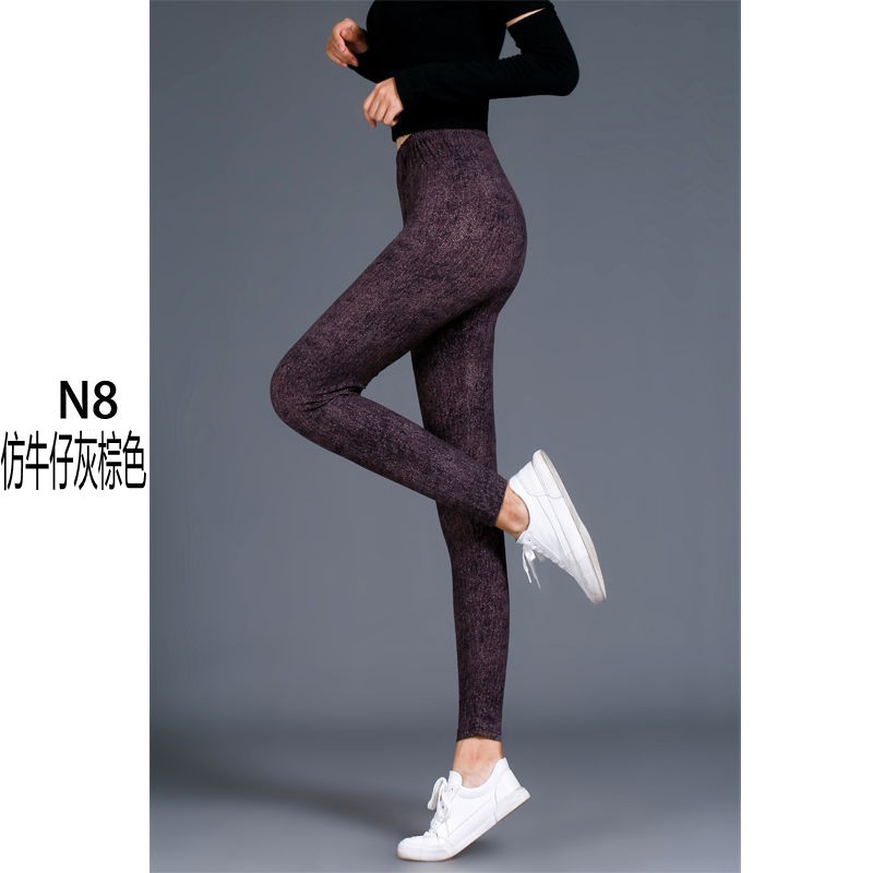 봄과 가을 모조 데님 프린트 레깅스 겉옷 틸트 팬츠 기모 스트레치 여성 바지 소프트 슬림핏 발목 길이 바지