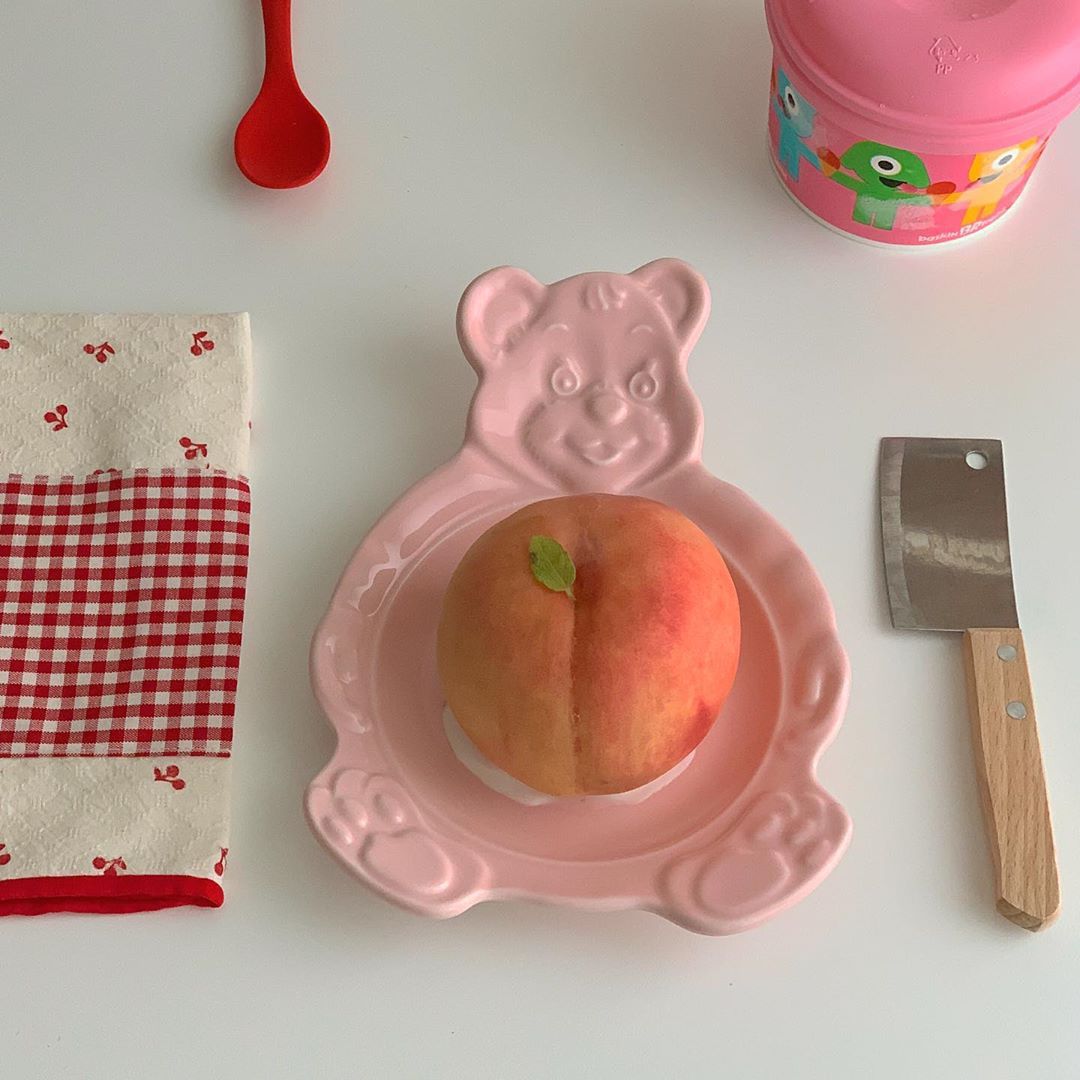 한국 INS 스타일 곰 그릇 디저트 샐러드 접시 빈티지 귀여운 곰 귀여운 접시 케이크 스낵 접시