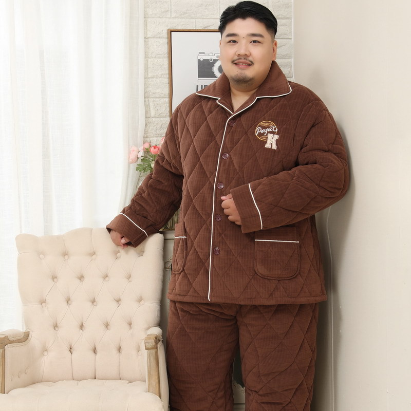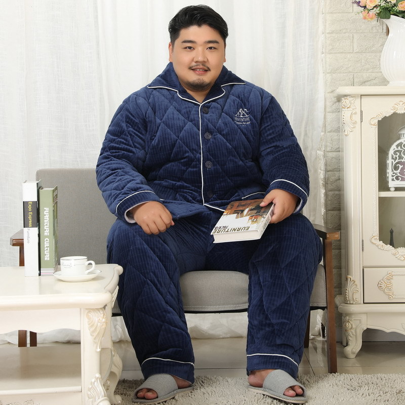 메이지 윤 남자의 두꺼운 퀼트 플란넬 3 층 따뜻한 잠옷 5XL 플러스 사이즈 뚱뚱한 남자 가정 옷 세트