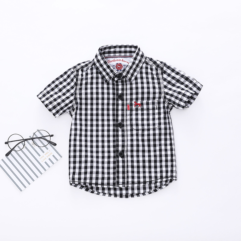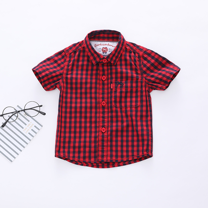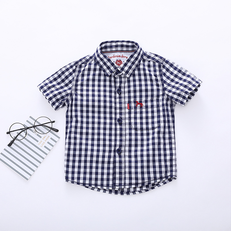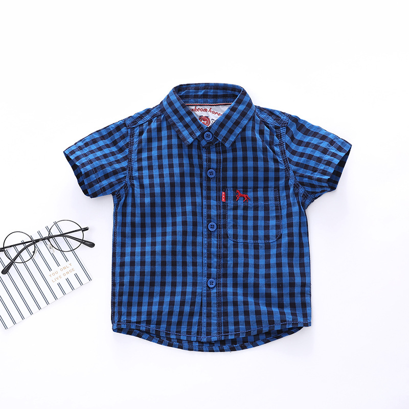 제조 업체 도매 BOY 소년 격자 무늬 반팔 여름 새로운 어린이 캐주얼 코튼 셔츠 얇은 섹션 0-2 세 아기