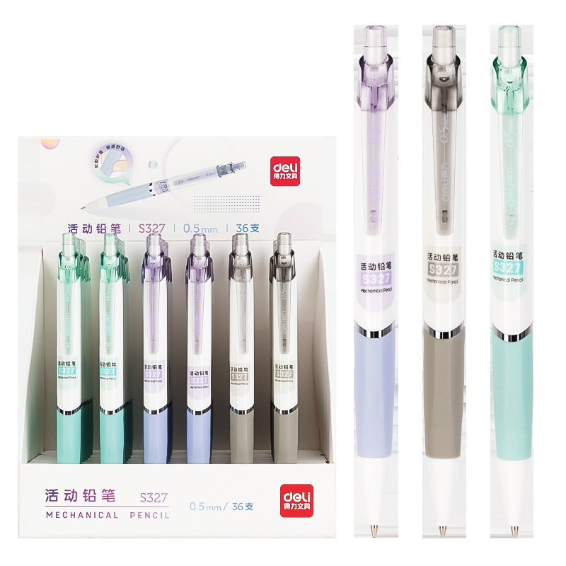 델리 S327 자동연필 0.5mm 심플 샤프펜슬 초등학생용 연속 누르면 자동으로 날카로운 심이 나오는 연필 도매