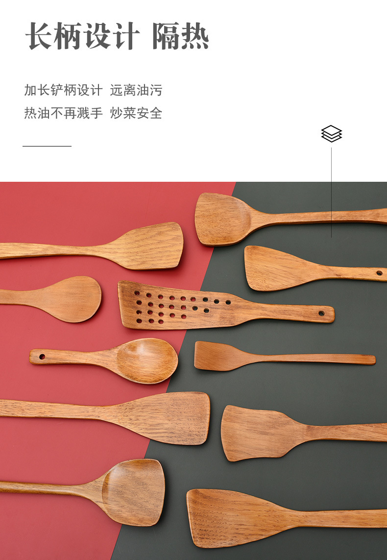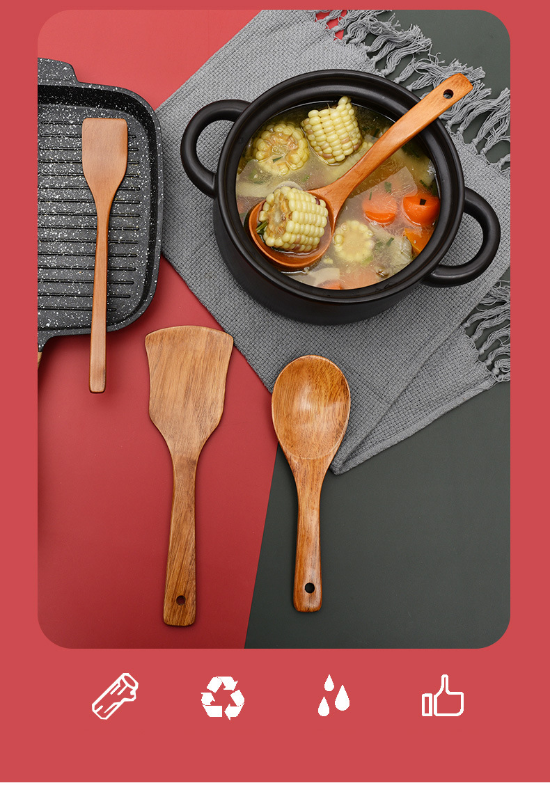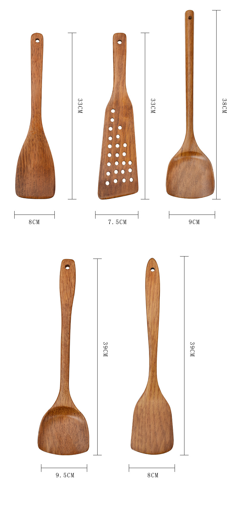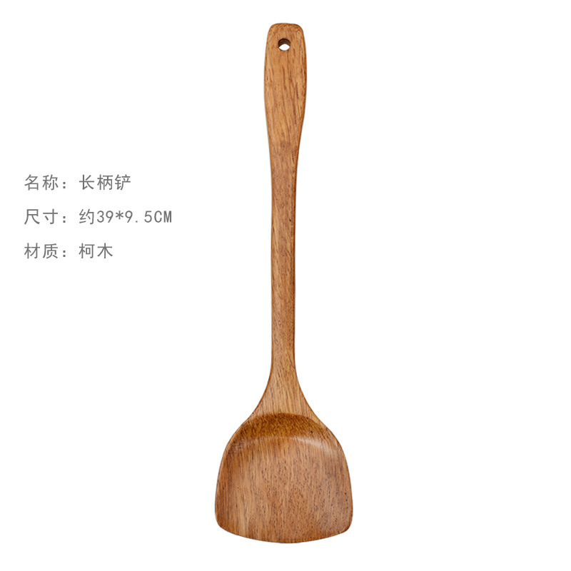 나무 조리용 주걱, 논스틱 팬 전용 주걱, 나무 손잡이가 긴 주걱, 로고 각인, 주방 조리용 숟가락과 주걱 세트
