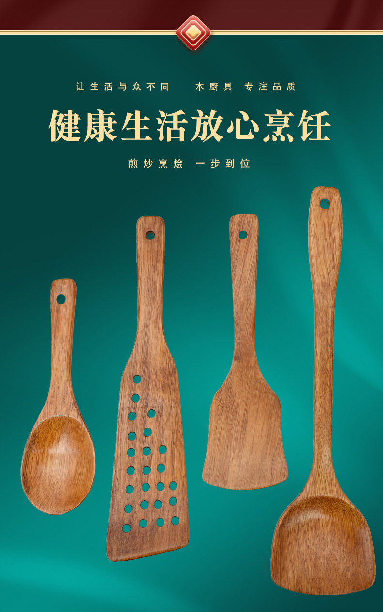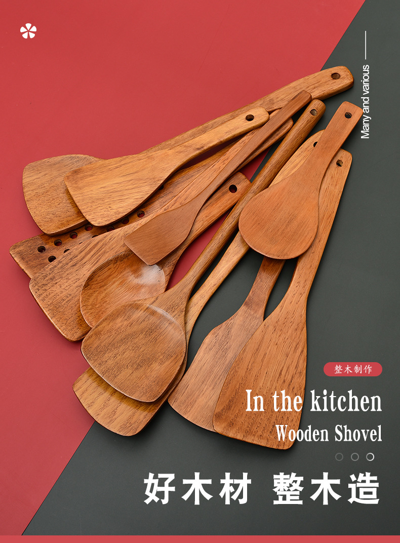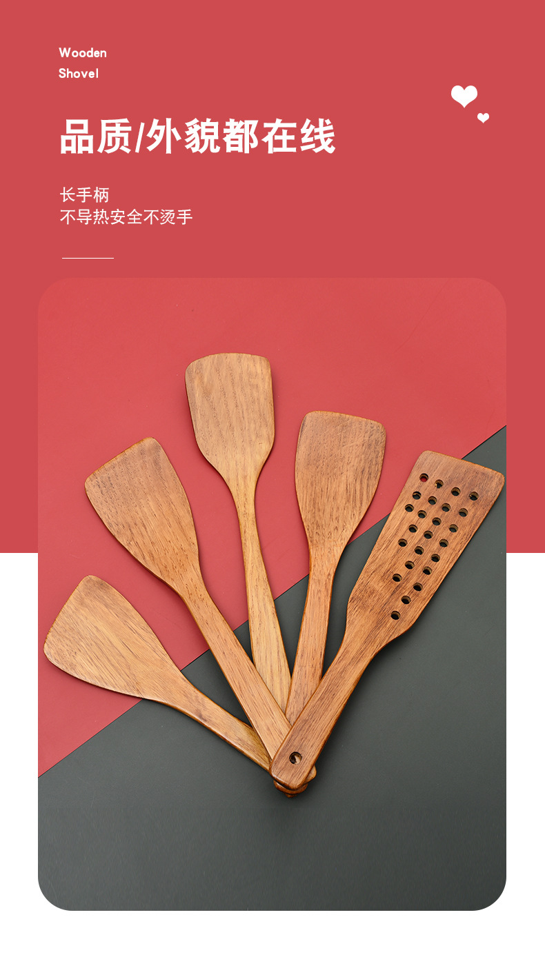 나무 조리용 주걱, 논스틱 팬 전용 주걱, 나무 손잡이가 긴 주걱, 로고 각인, 주방 조리용 숟가락과 주걱 세트