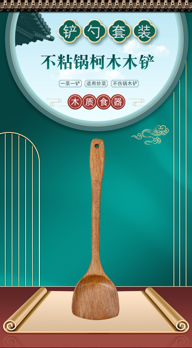 나무 조리용 주걱, 논스틱 팬 전용 주걱, 나무 손잡이가 긴 주걱, 로고 각인, 주방 조리용 숟가락과 주걱 세트스토어 가기