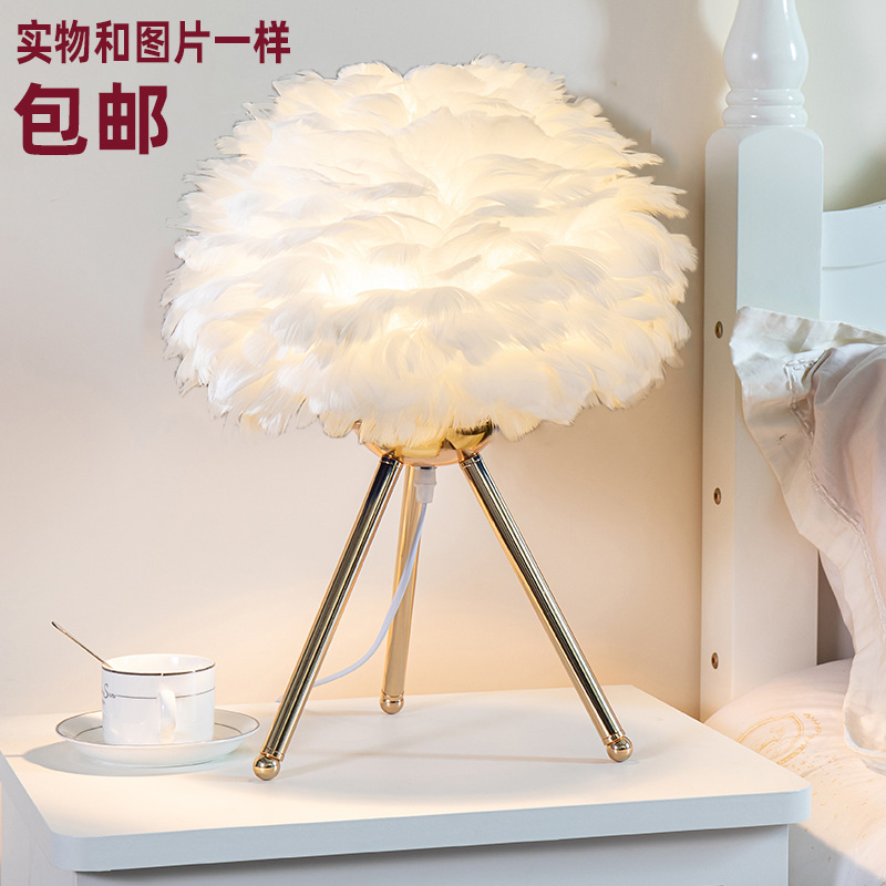 깃털 테이블 램프 침실 소녀 침대 옆 램프 크리 에이 티브 간단한 현대 야간 조명 웨딩 룸 따뜻한 장식 램프