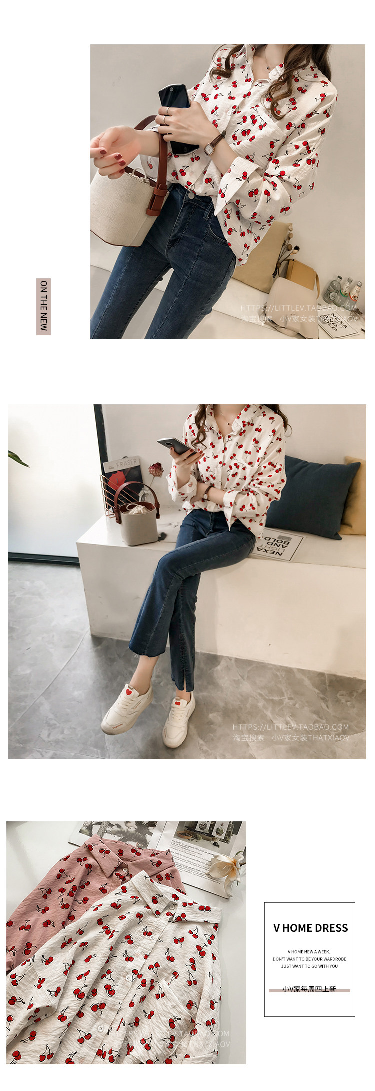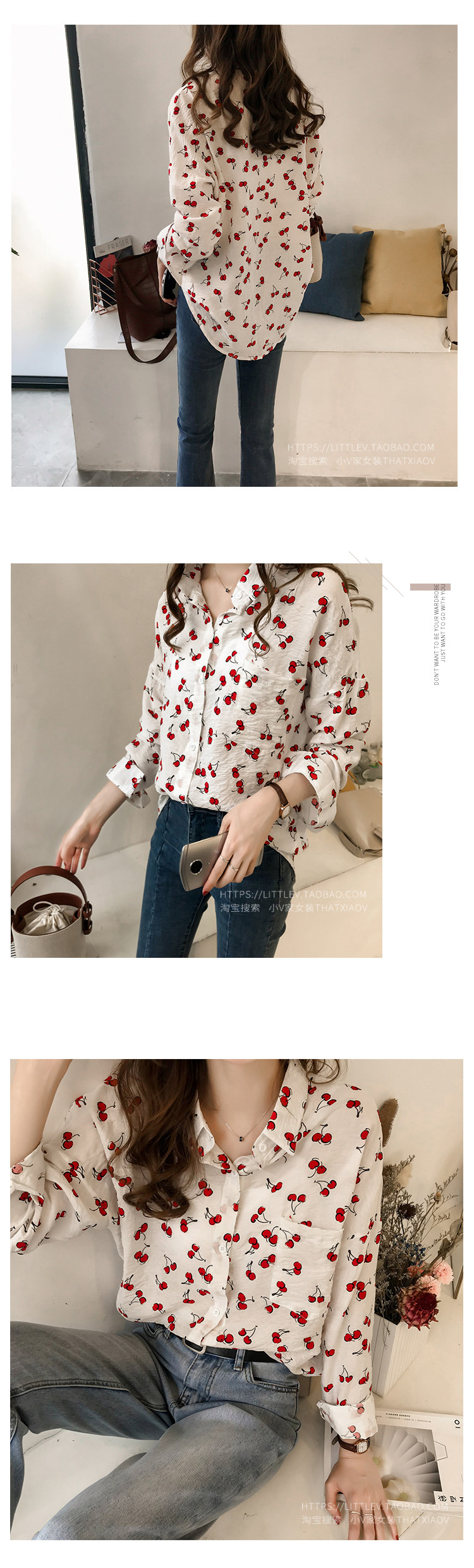 크로스 보더 가을 새로운 우아한 긴팔 셔츠 여성용 느슨한 슬림 한국 달콤한 체리 블라썸 셔츠 베이스 셔츠 탑스토어 가기