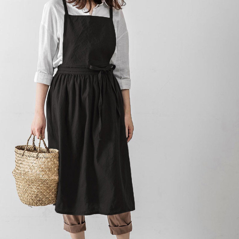 순수한 린넨 앞치마 일본식 빈티지 예술적 여성용 밀크 티 커피 숍 베이킹 네일 아트 작업 앞치마 홈 주방스토어 가기