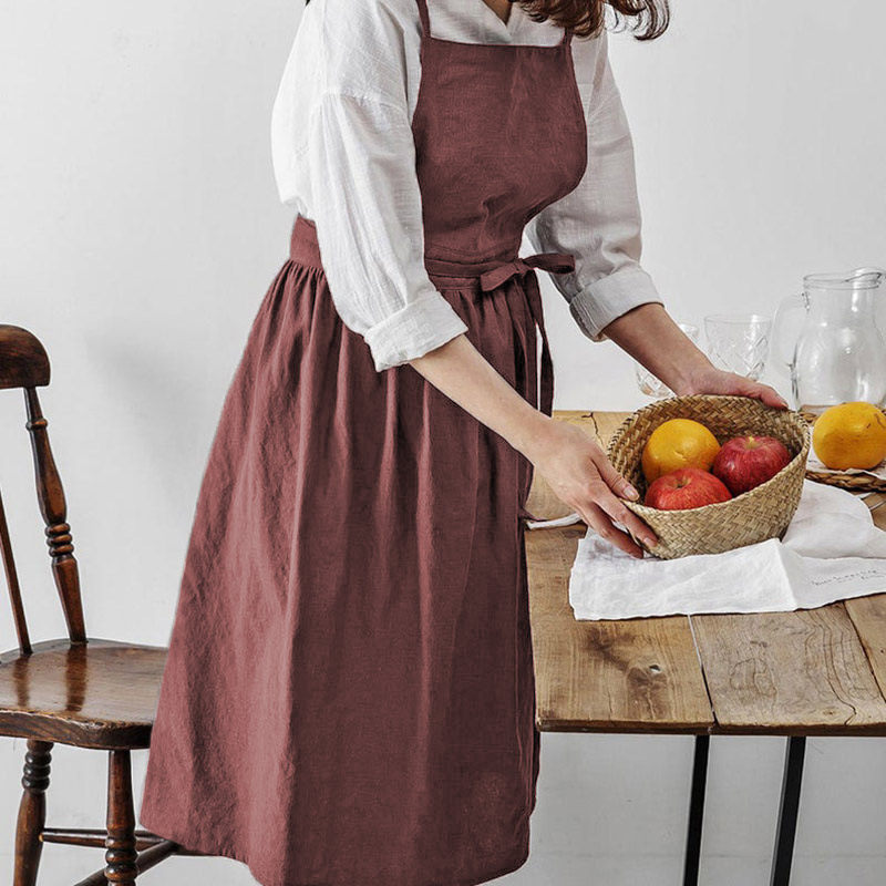 순수한 린넨 앞치마 일본식 빈티지 예술적 여성용 밀크 티 커피 숍 베이킹 네일 아트 작업 앞치마 홈 주방