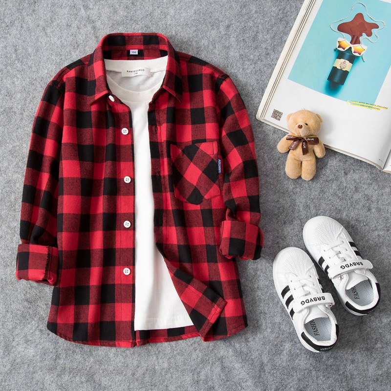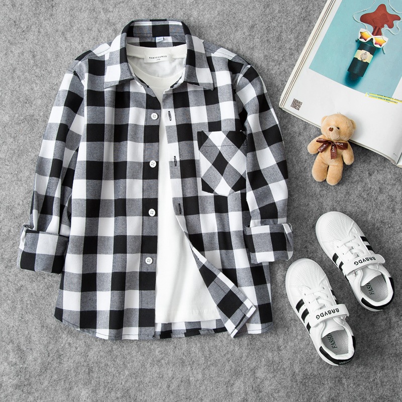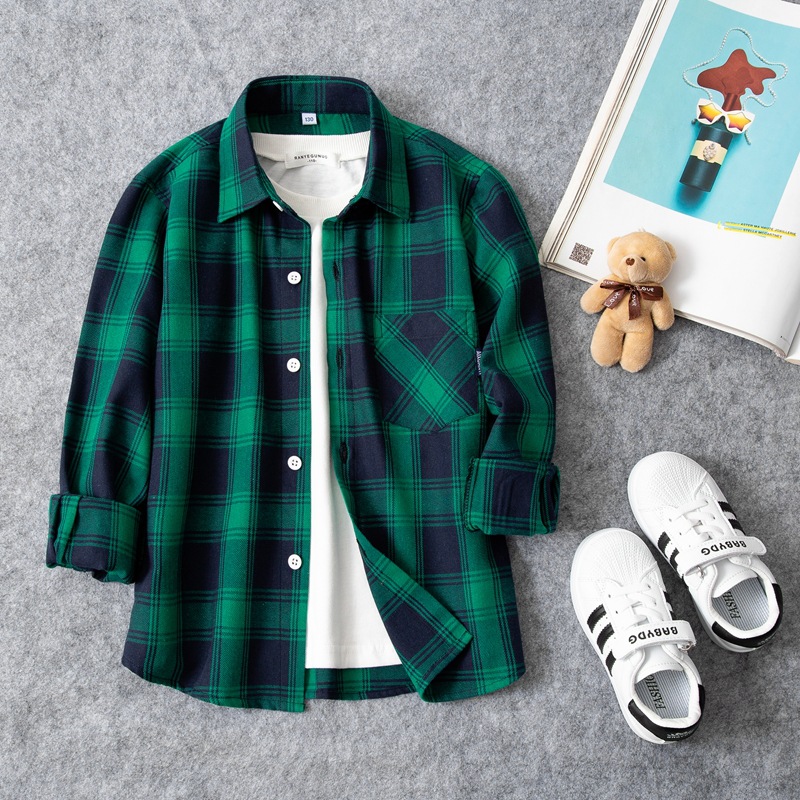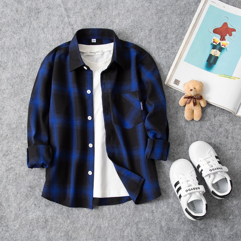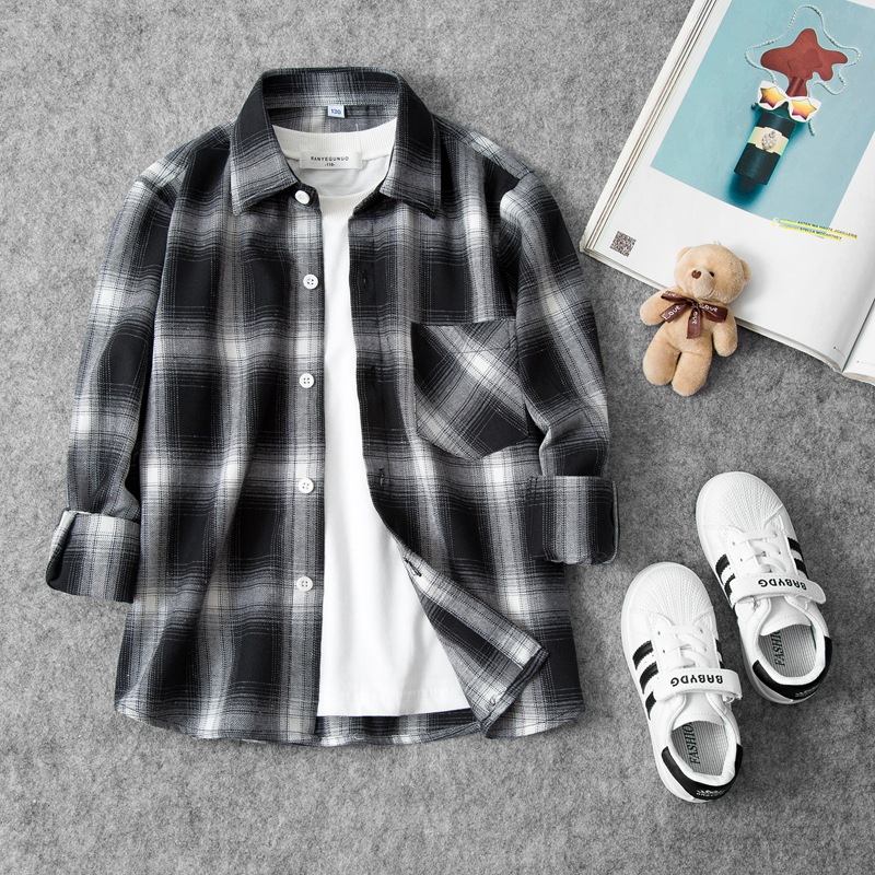 2023 공장 다이렉트 소년 긴팔 체크 무늬 셔츠 코트 가을 봄과 가을 어린이 셔츠 어린이 아기 코트스토어 가기
