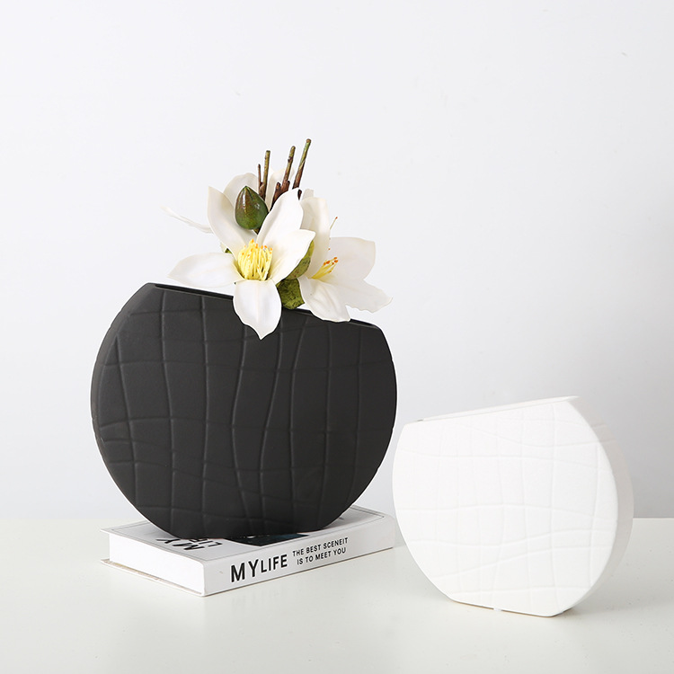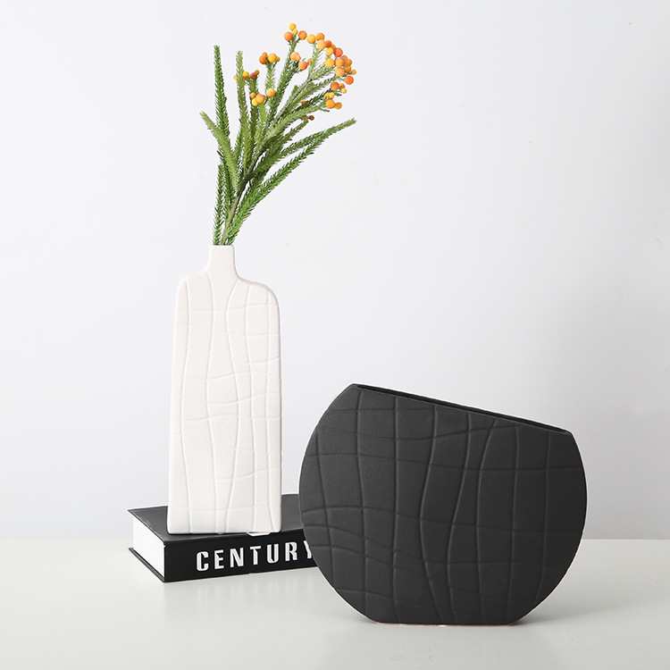 간단한 예술 흑백 줄무늬 세라믹 꽃병 창조적 인 디자인 장식 호텔 쇼룸 모델 룸 홈 장식
