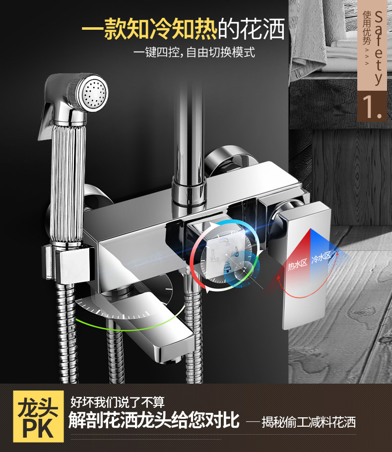 모든 구리 샤워 슬리브 가정복 입욕 어두운 옷 명나라 옷 이중 제어 레인 샤워 화장실 욕실 다기능 스프링클러스토어 가기