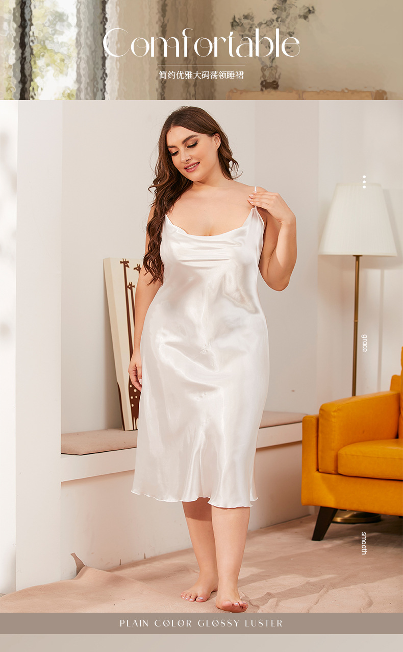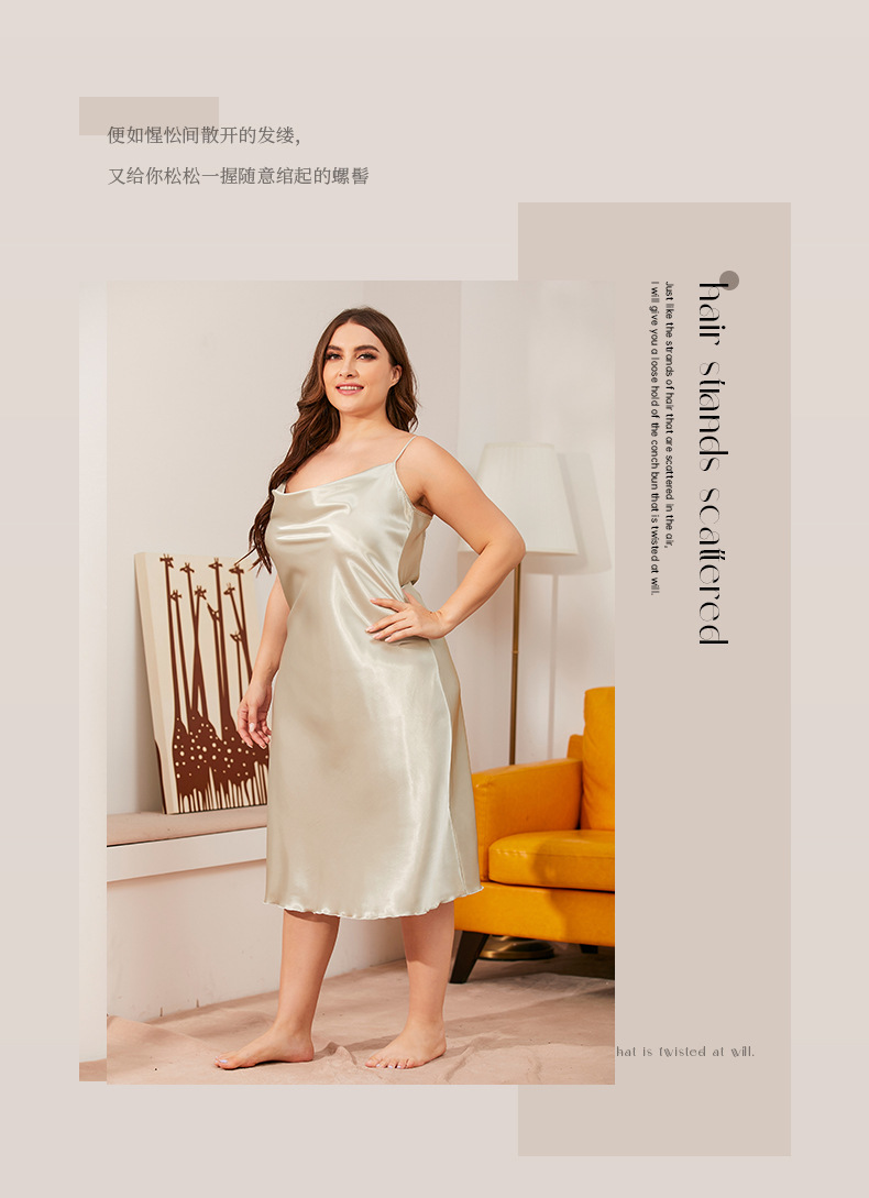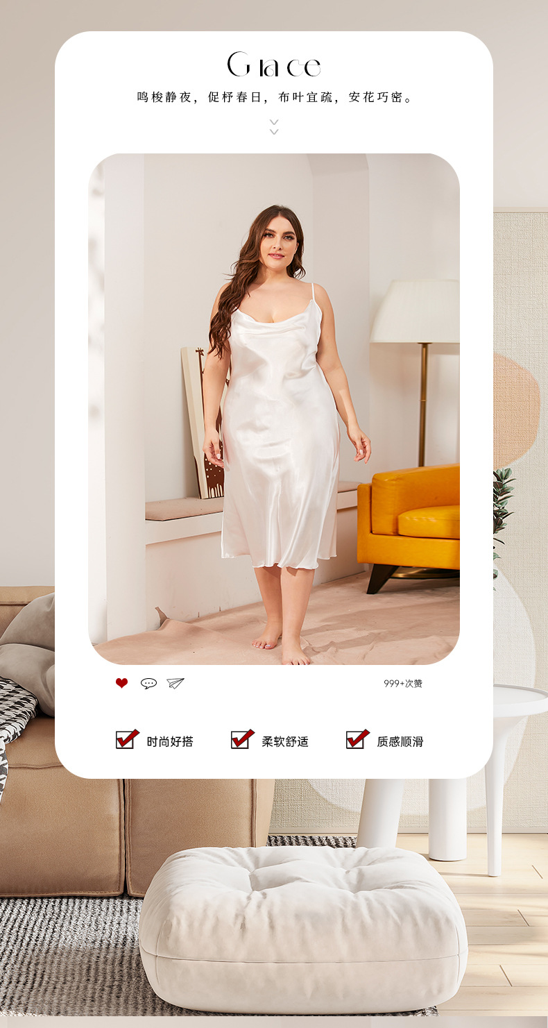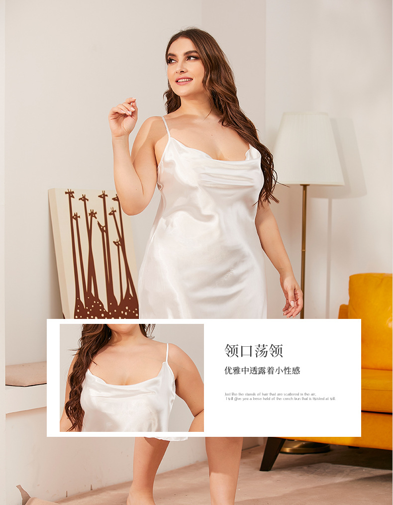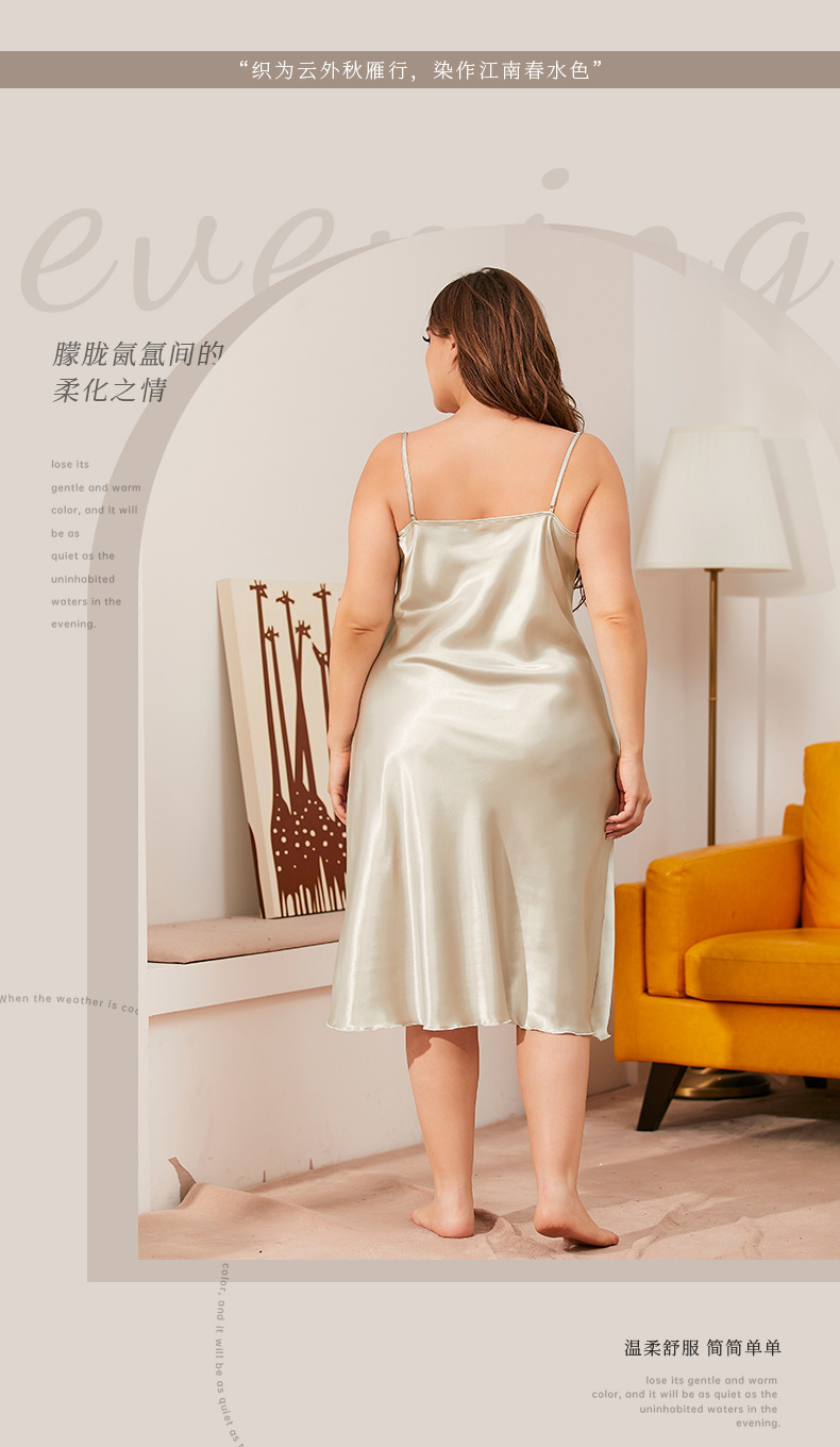 Yaoting 100kg 플러스 사이즈 아이스 실크 잠옷 여성 여름 원피스 스윙 칼라 서스펜더 느슨한 홈웨어 도매 1630P스토어 가기