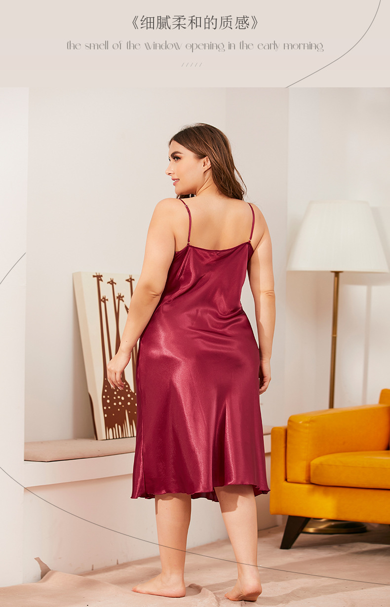 Yaoting 100kg 플러스 사이즈 아이스 실크 잠옷 여성 여름 원피스 스윙 칼라 서스펜더 느슨한 홈웨어 도매 1630P