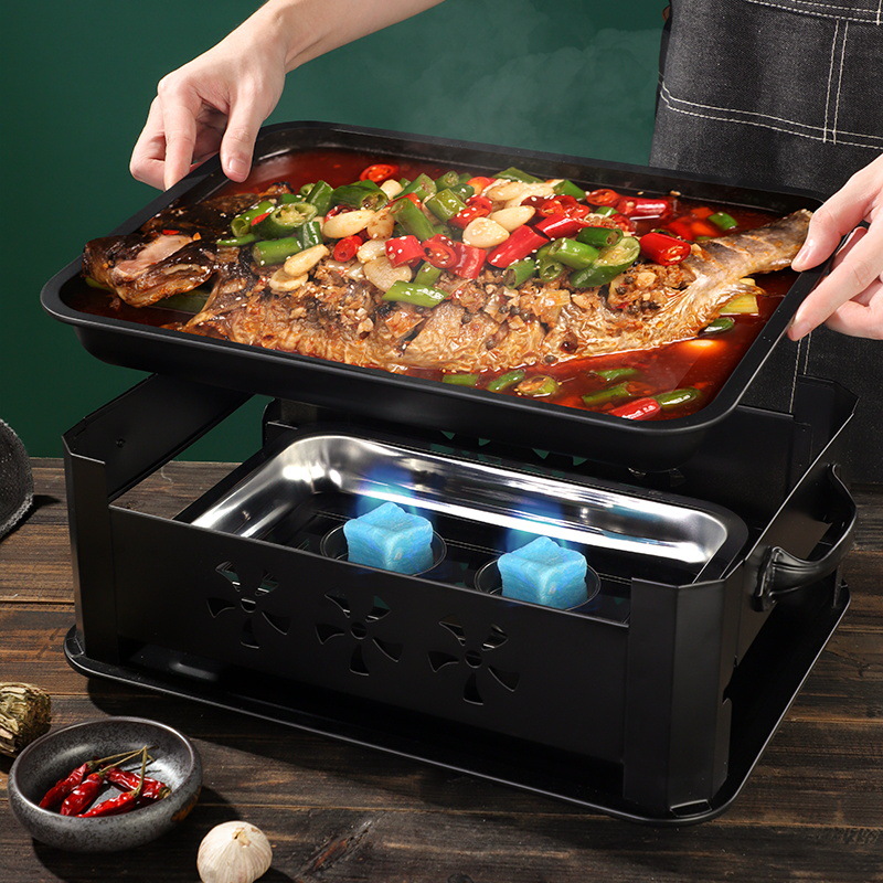 블랙 스테인레스 스틸 생선 그릴 카본 그릴 그릴 블랙 스틸 붙지 않는 생선 접시 숯 알코올 해산물 대형 커피 접시스토어 가기