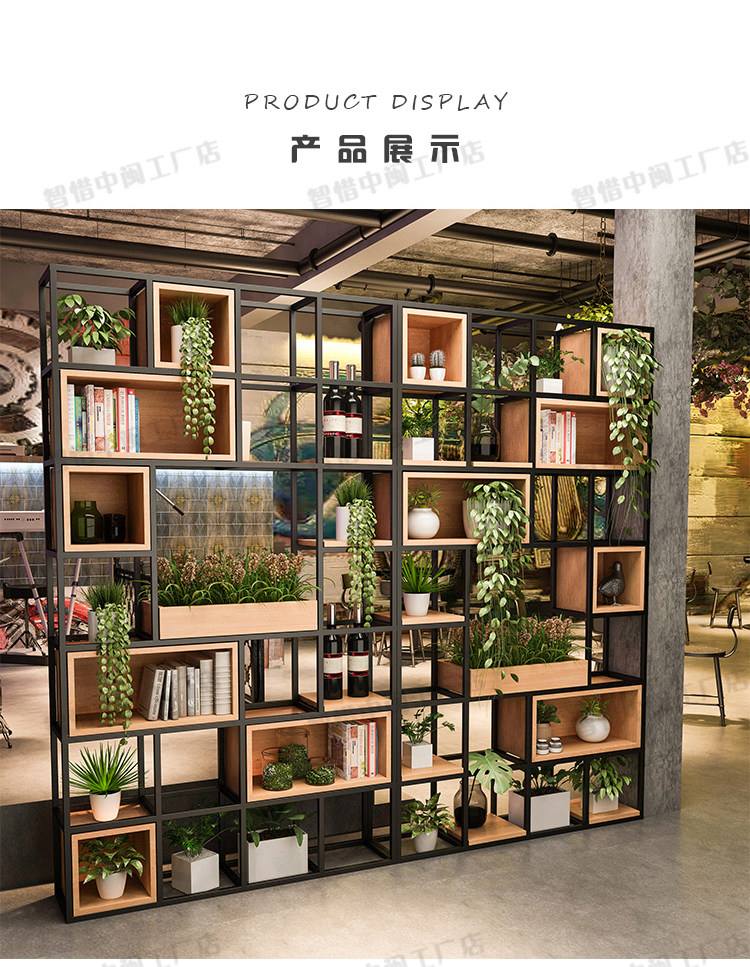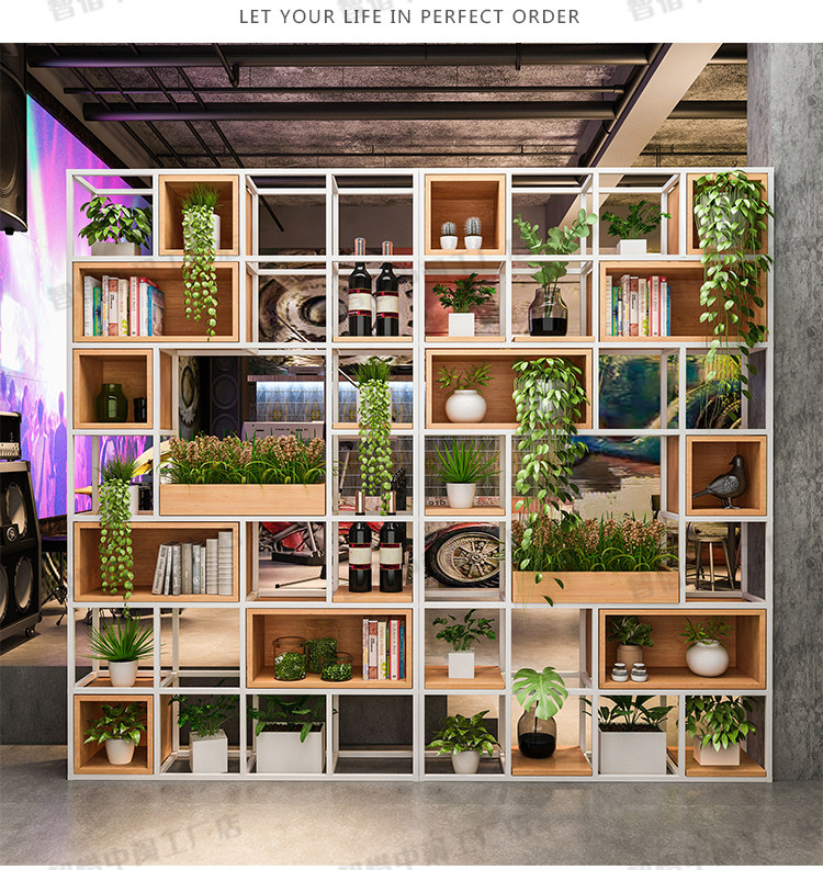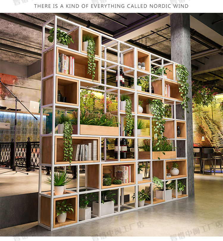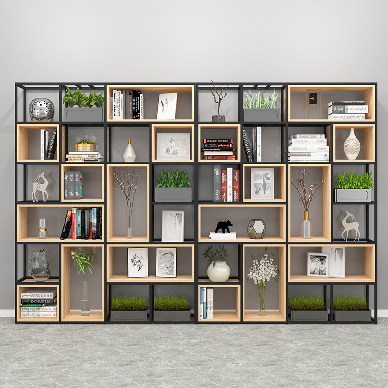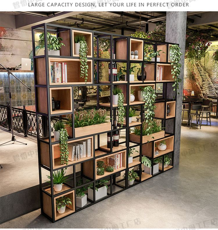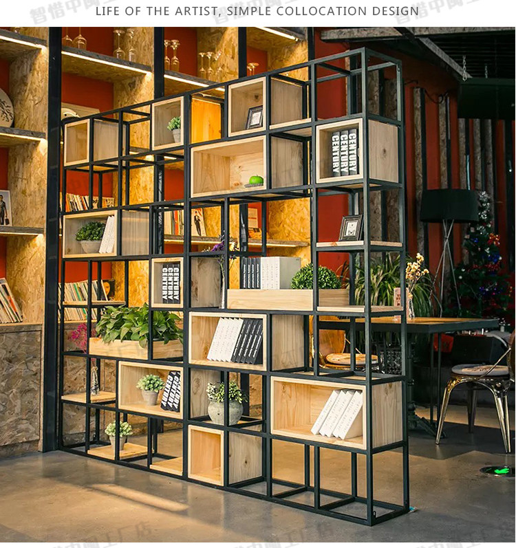 사무실 화면 파티션 철 랙 북유럽 레스토랑 거실 단단한 나무 책장 디스플레이 랙 다층 스토리지 랙