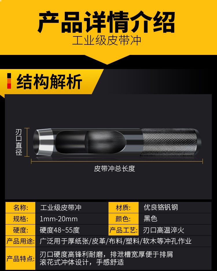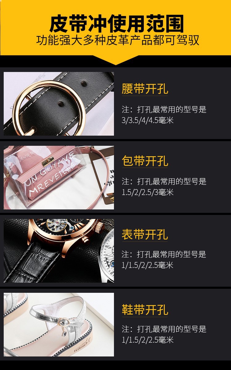 독일 크롬 바나듐 합금 강철 피터 펀치 블랙 벨트 펀처 1-50mm 가죽 아일렛 펀치 라운드 드릴링