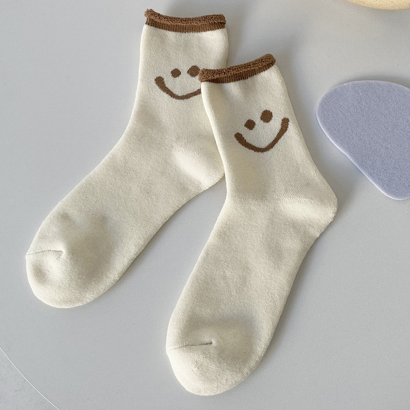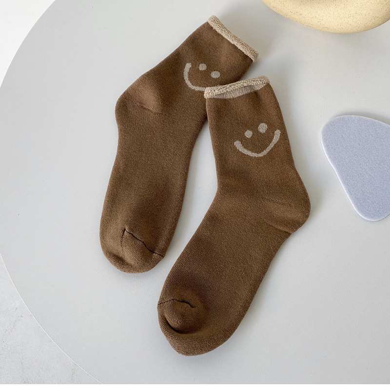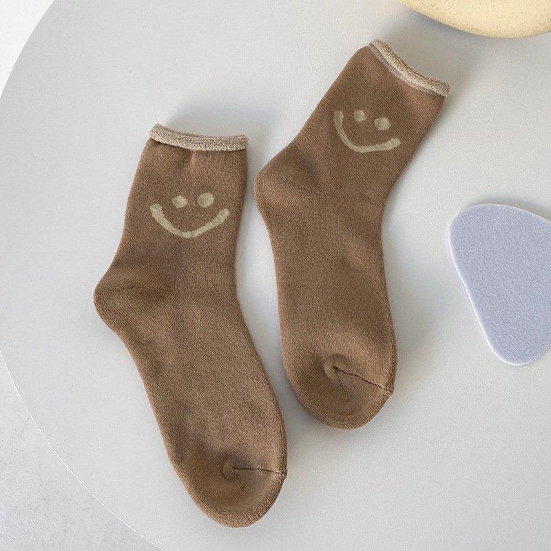 가을, 겨울 새로운 테리 양말 일본 단색 컬링 두꺼운 따뜻한 여성 양말 편안한면 양말