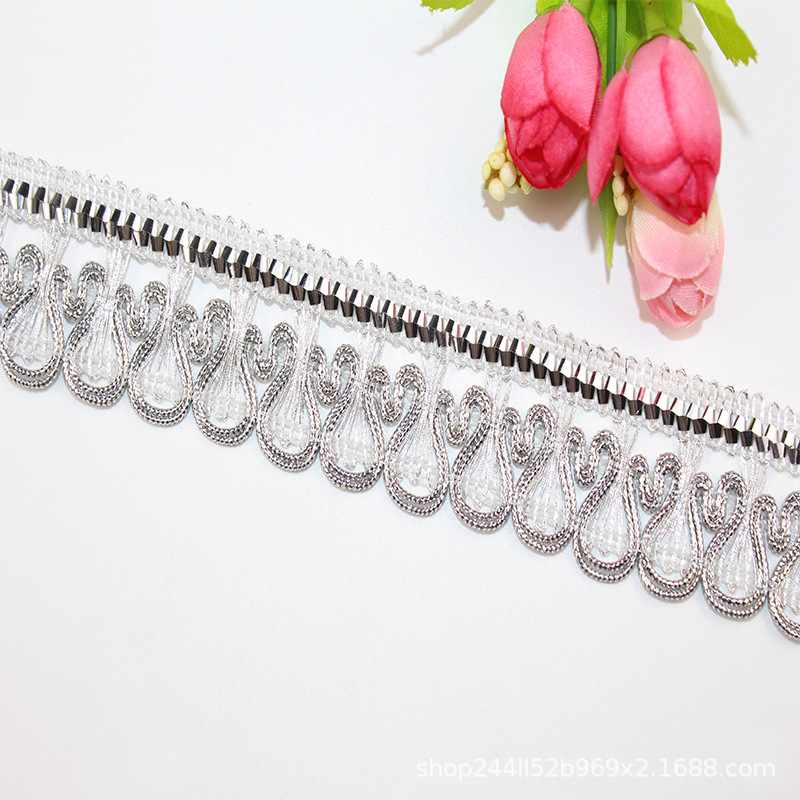 공장 새로운 금색과 실버 실크 레이스 인종 스타일 컬러 레이스 커튼 의류 액세서리 스팽글 황금 레이스