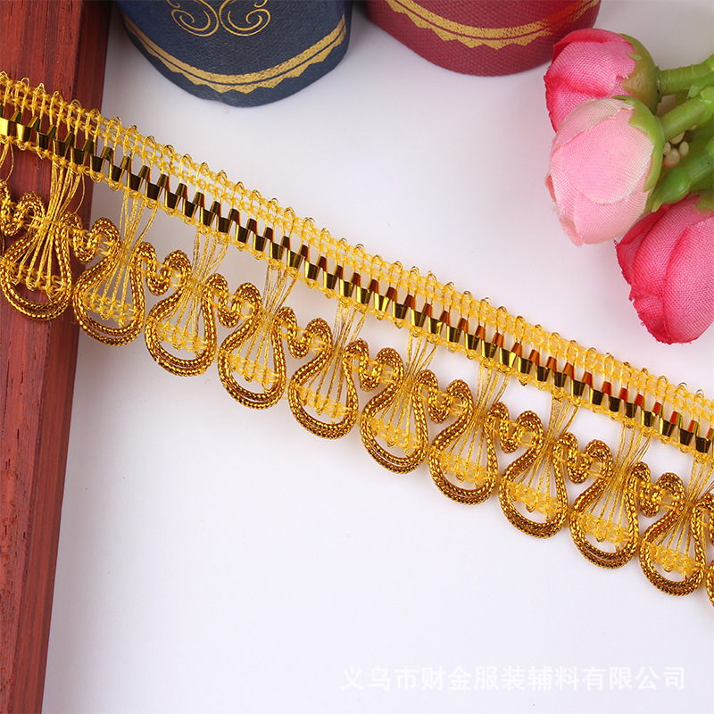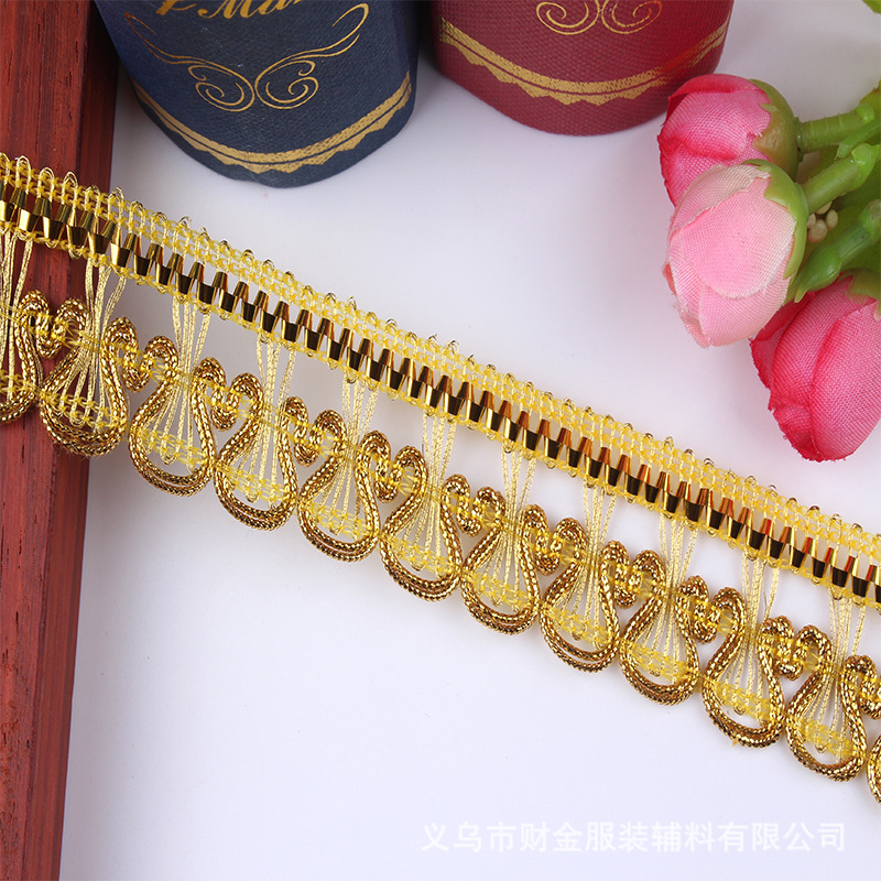 义乌财金辅料批发金银丝花边 彩色花边 精致服装辅料金色波浪花边